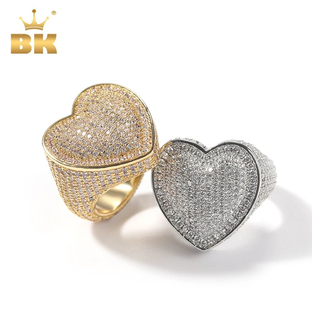 THE BLING KING Big Heart Ring Full Micro Paved Iced Out Bling Cubic Zirconia HipHop Ring Delicate Punk Jewelry For Men And Women