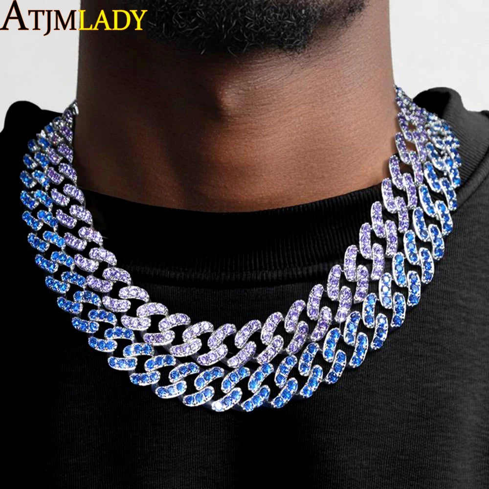 12mm Micro Pave CZ Cuban Link Necklaces pink Luxury Bling Bling choker Jewelry iced out bling zircon rock punk women men jewelry