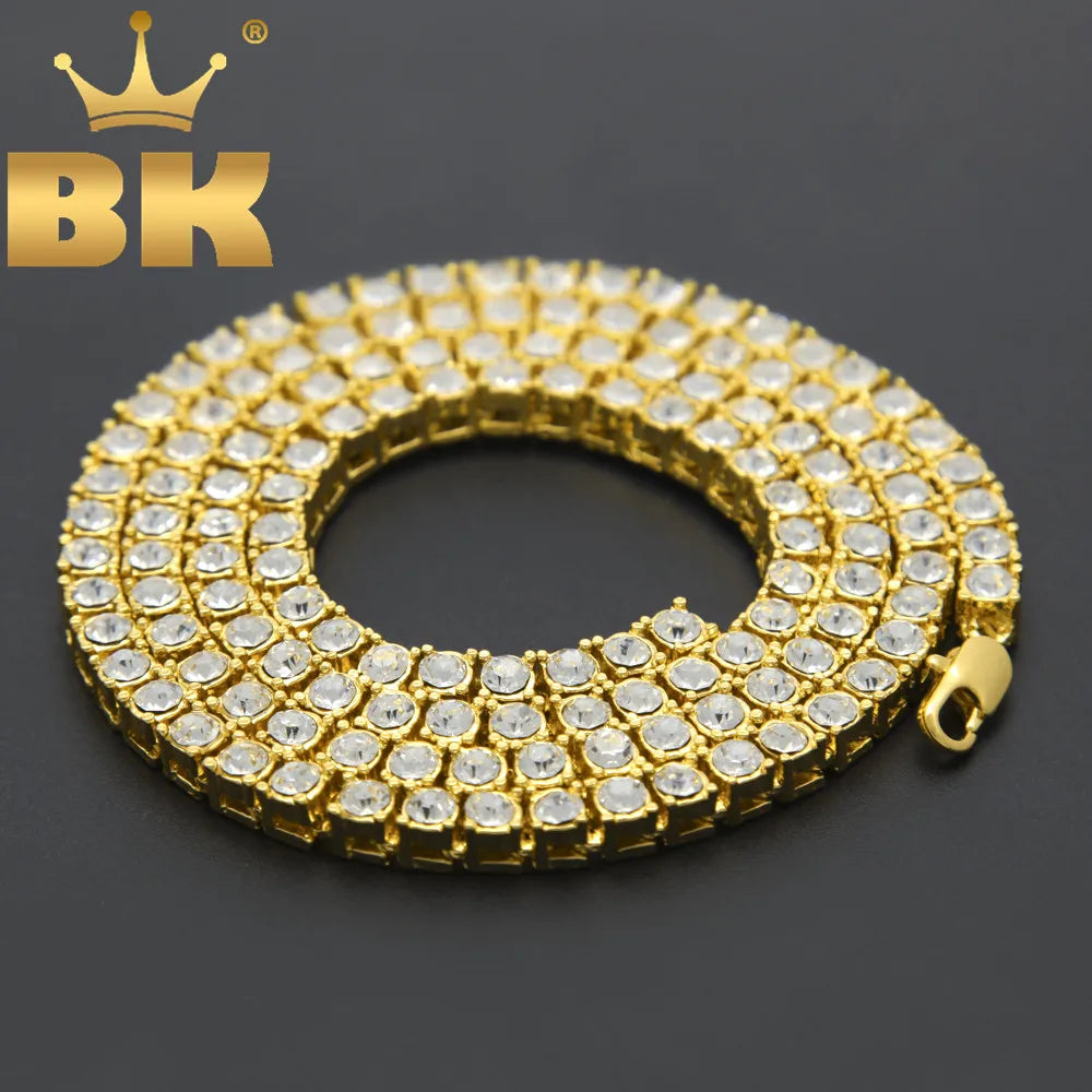 Men's Hip Hop Bling Bling Iced Out Tennis Chains 1 Row Necklaces Luxury Brand Silver/Gold Color Men Chain Fashion Jewelry