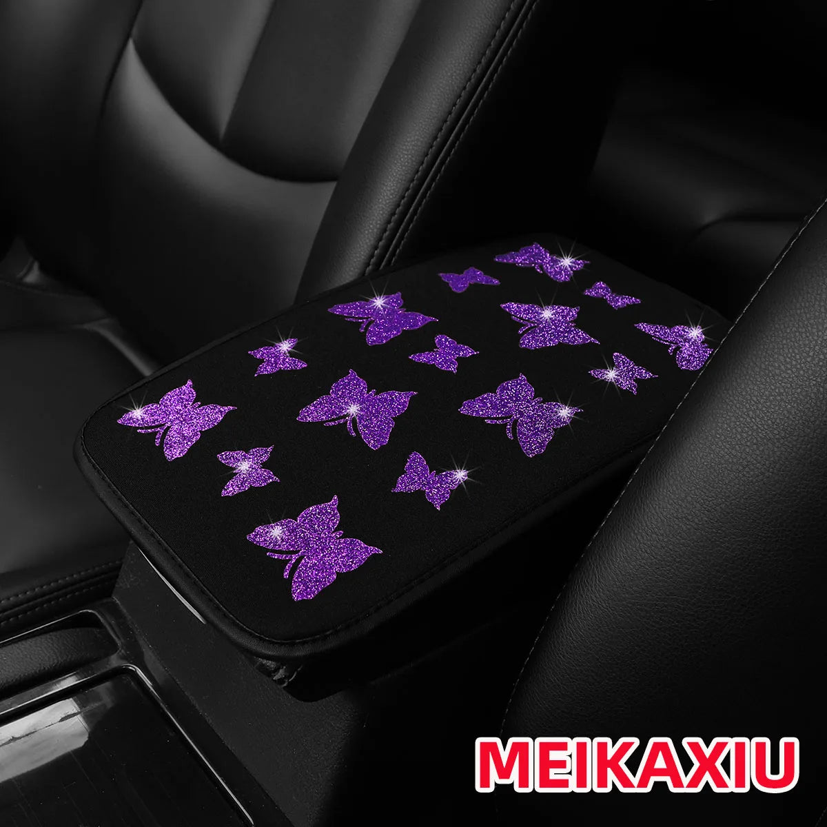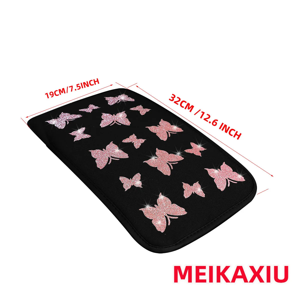 1 beautiful butterfly Glitter Blingbling Fabric waterproof car armrest pad 12.6 "X7.5" car accessories for women