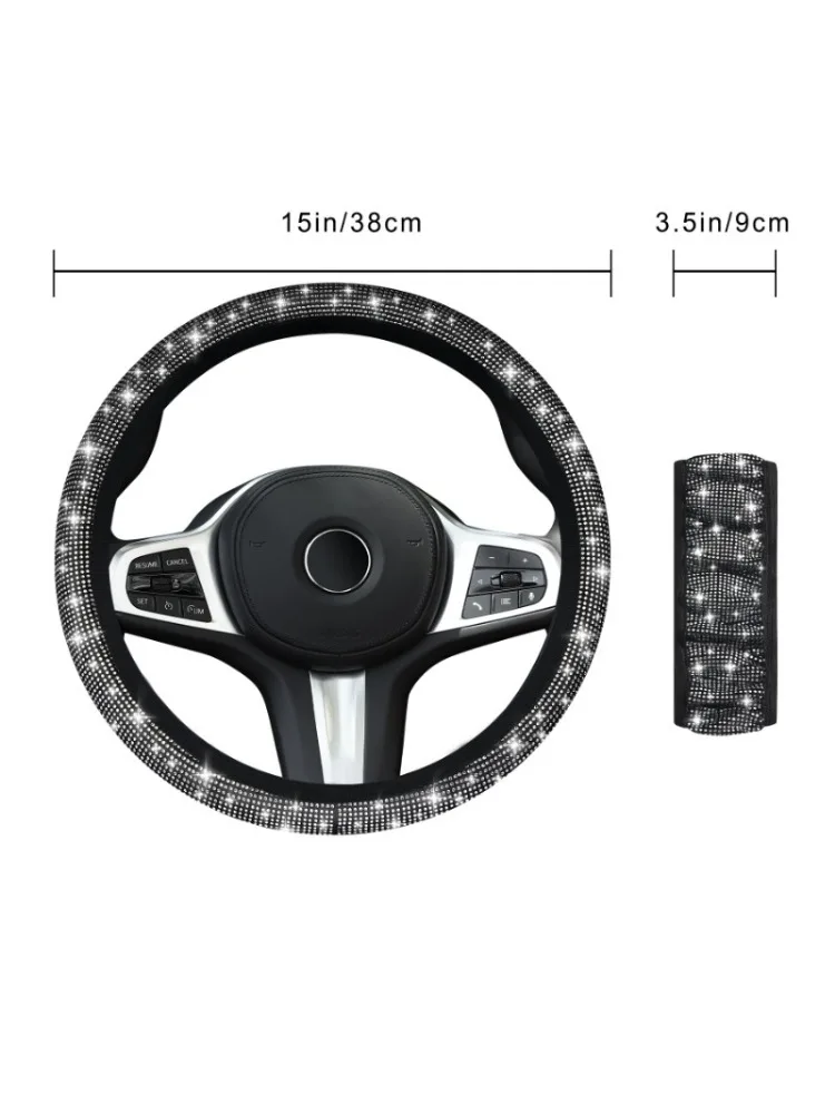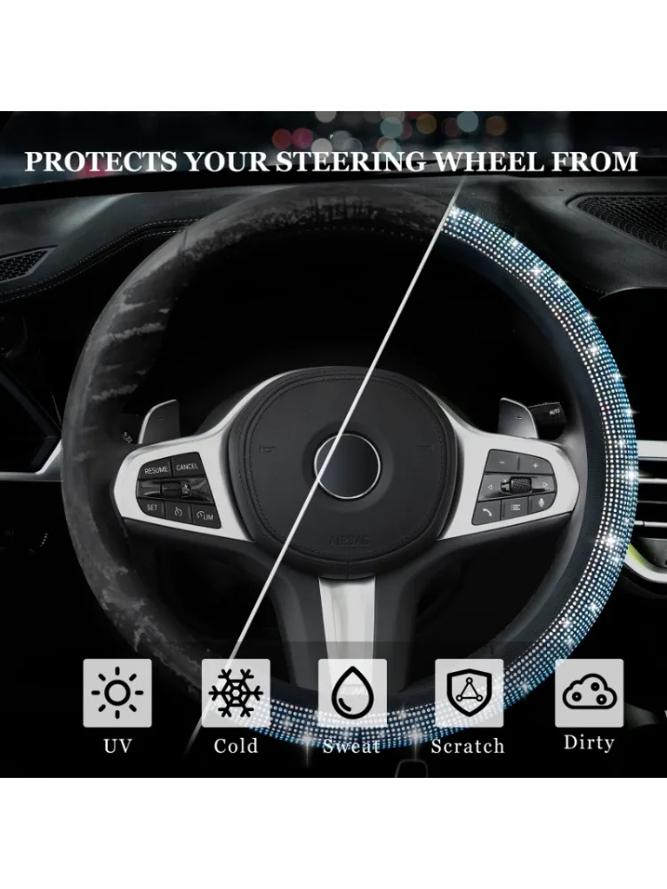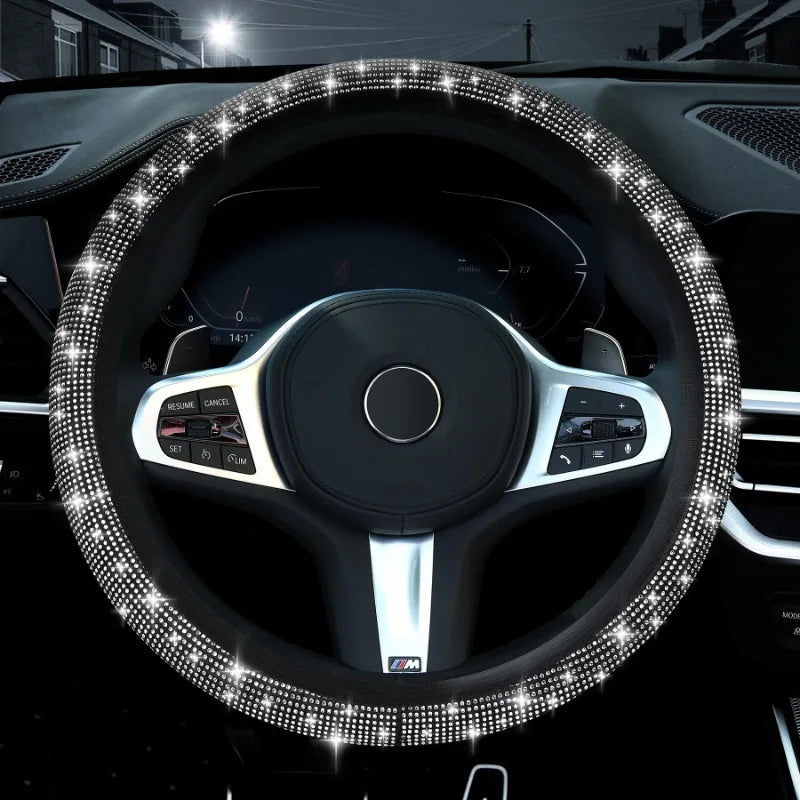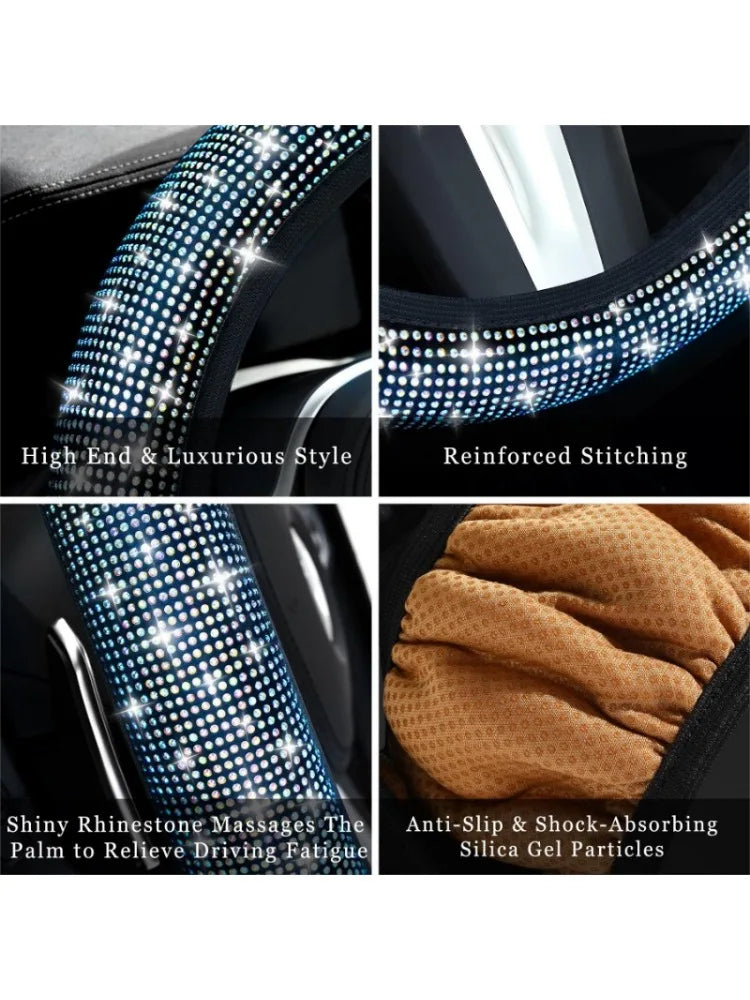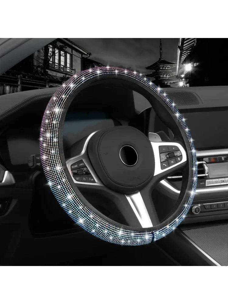 2025 Bling Bling Diamond Rhinestones Crystal Car Steering Wheel Cover PU Leather Auto Accessories Case Car Styling
