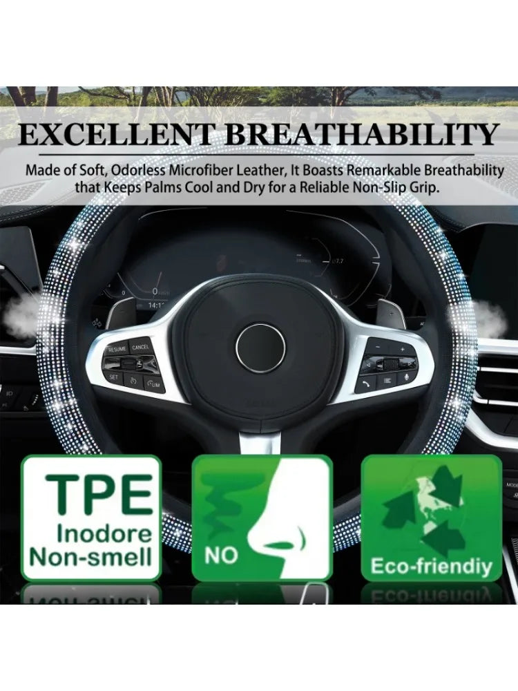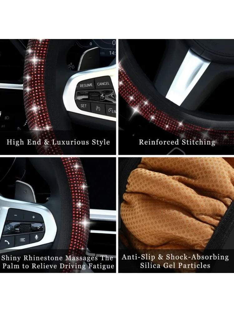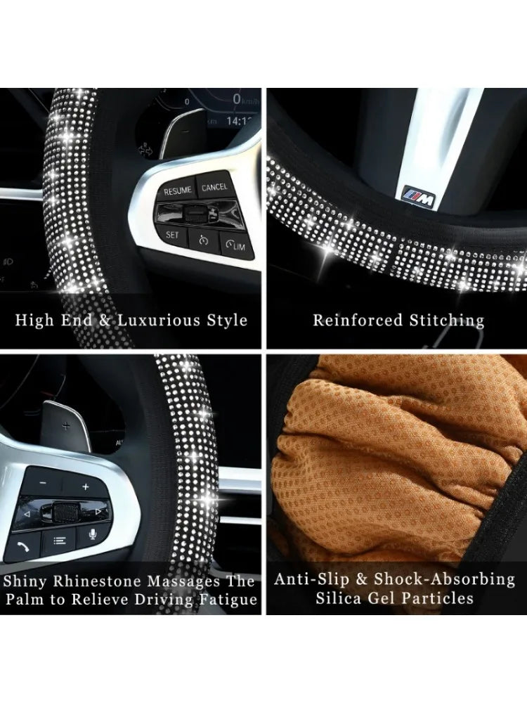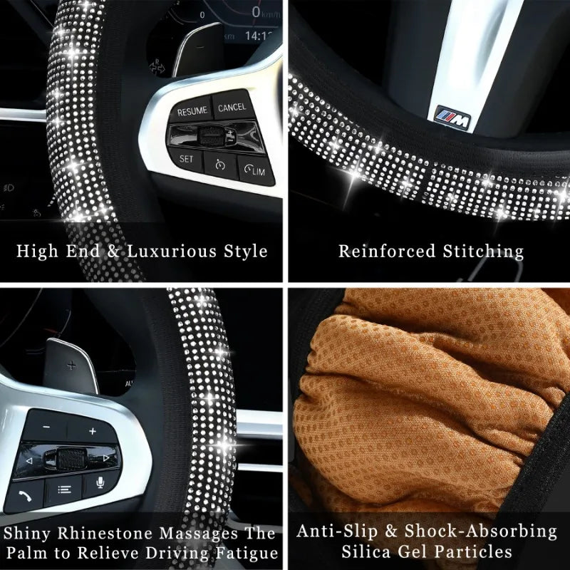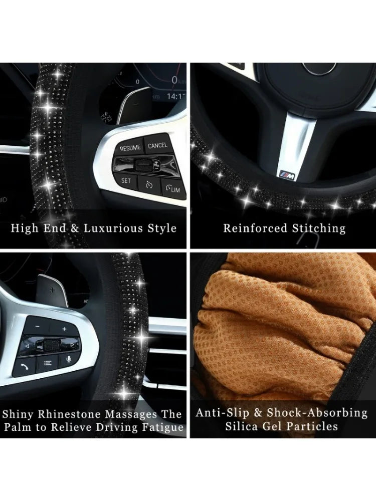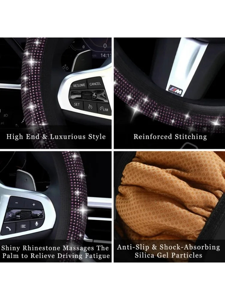 2025 Bling Bling Diamond Rhinestones Crystal Car Steering Wheel Cover PU Leather Auto Accessories Case Car Styling