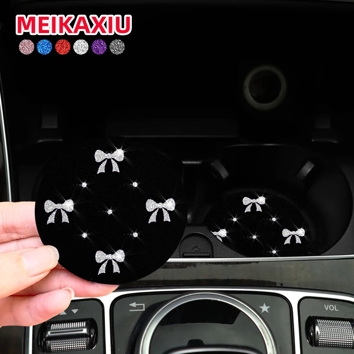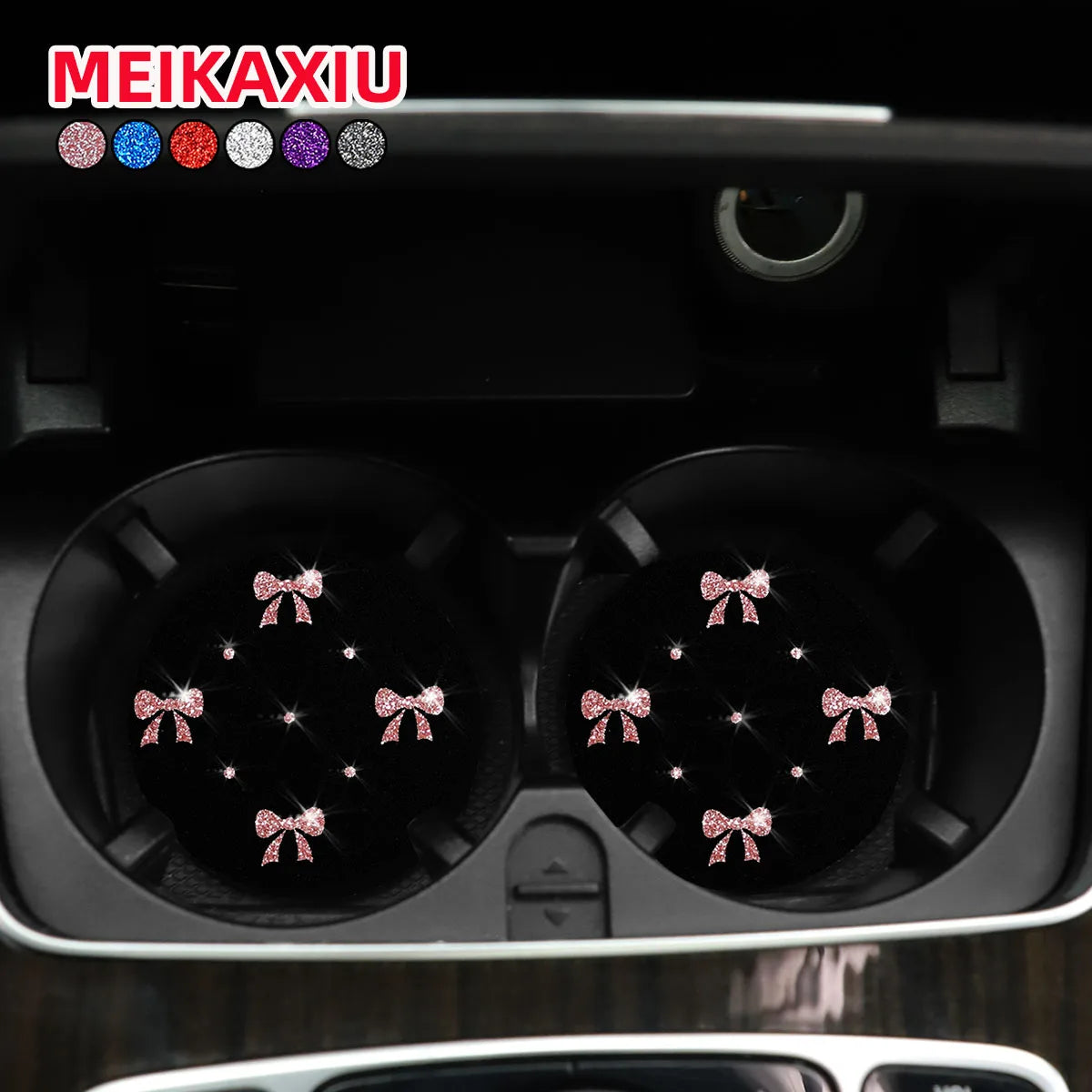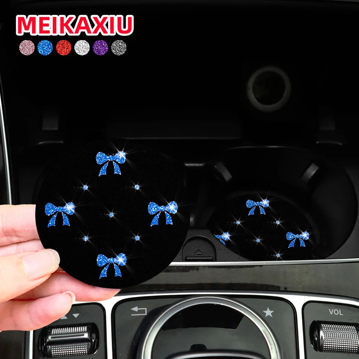 A pair of bow glitter Blingbling water coasters waterproof non-slip car water cup holder car interior accessories for women