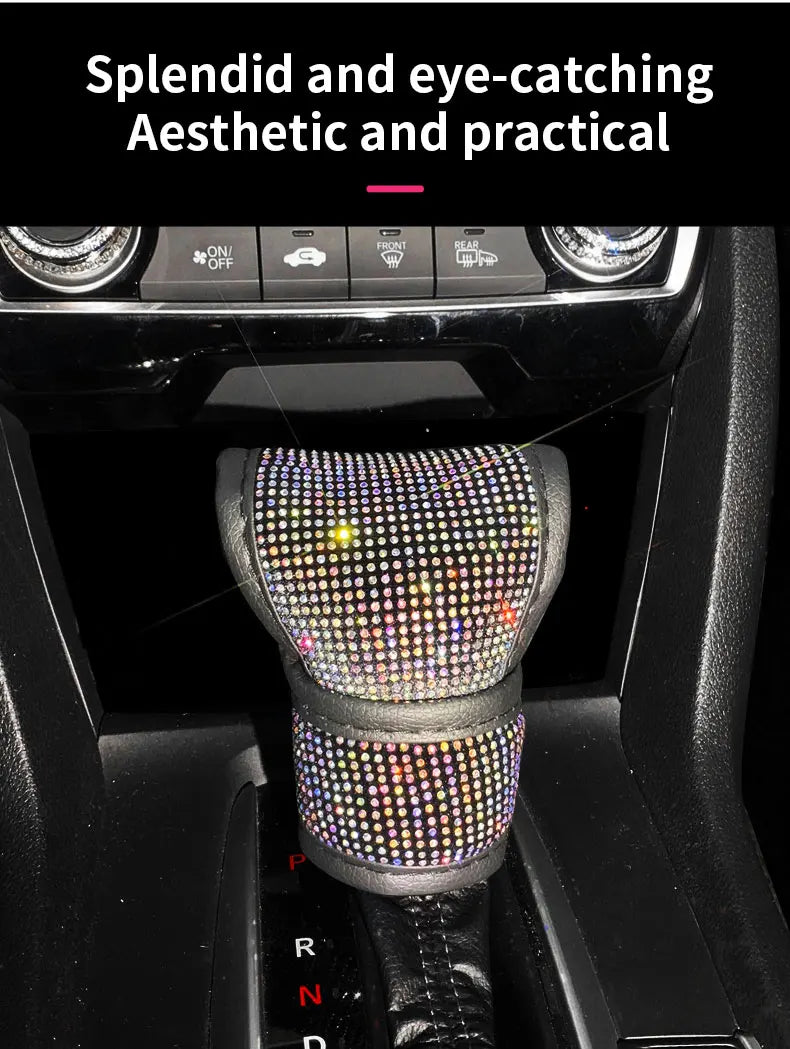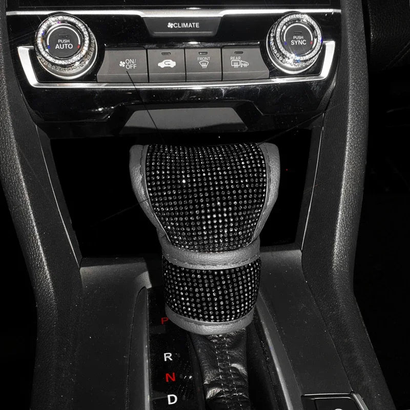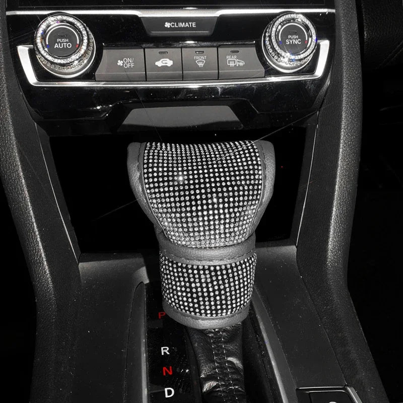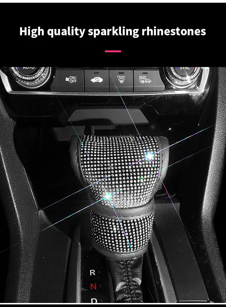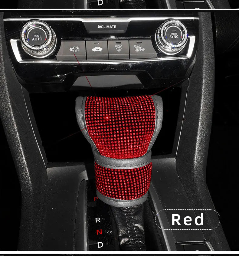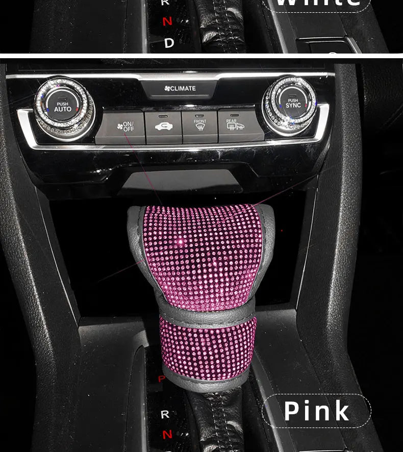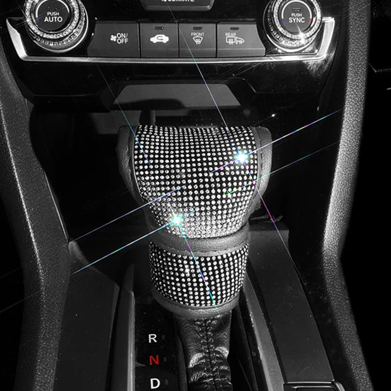 Bling Bling Car Shift Gear Cover Leather Auto Gear Shift Knob Cover Universal Crystal Rhinestones Car Accessories for Women