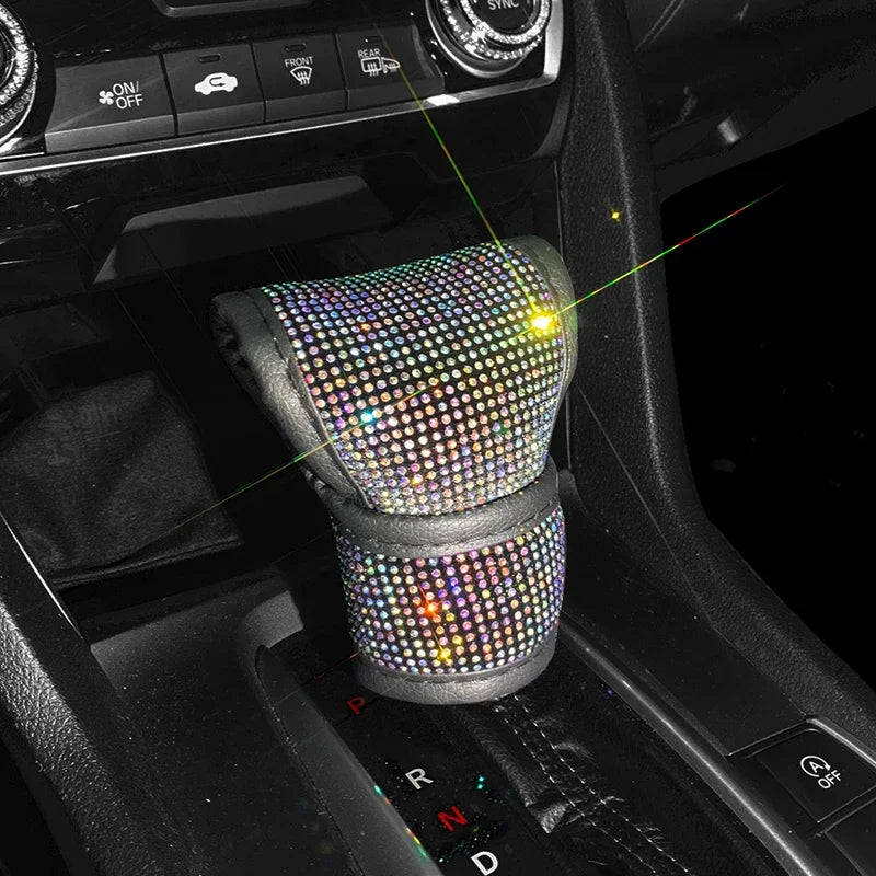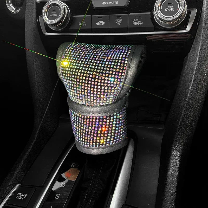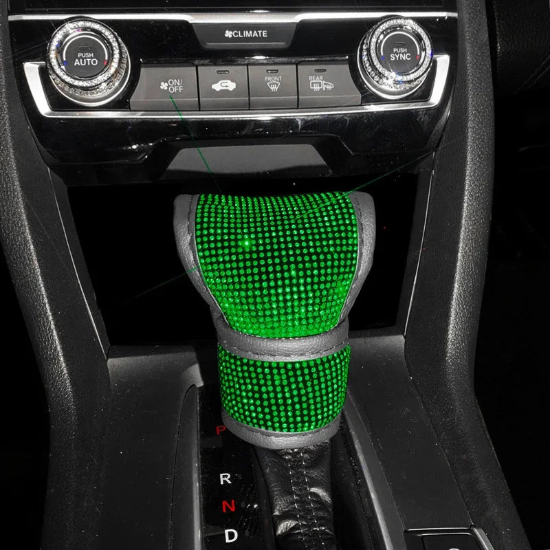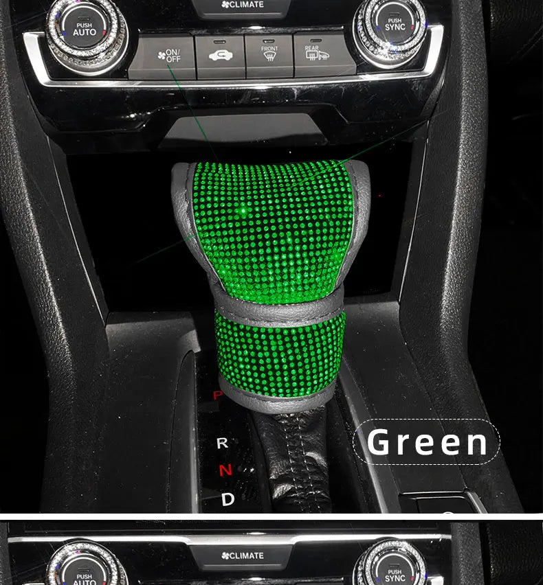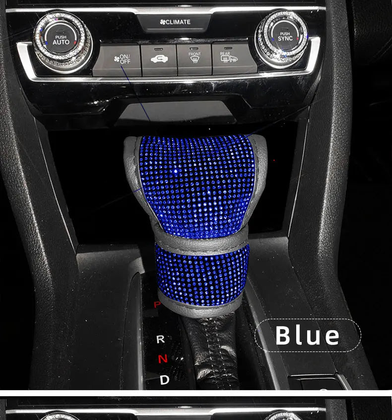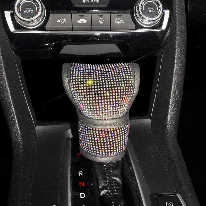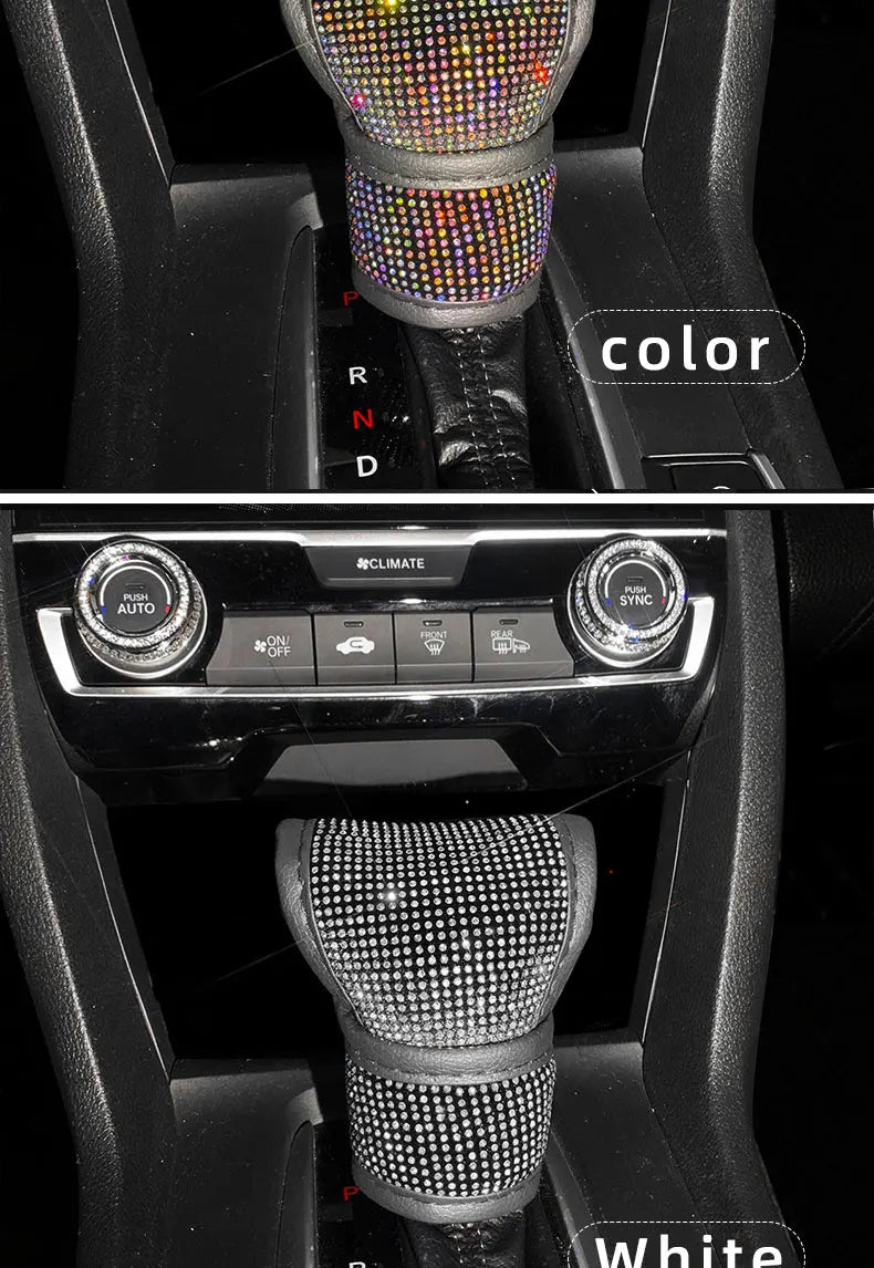 Bling Bling Car Shift Gear Cover Leather Auto Gear Shift Knob Cover Universal Crystal Rhinestones Car Accessories for Women