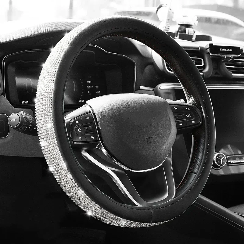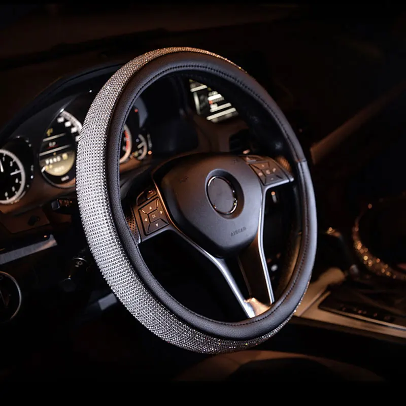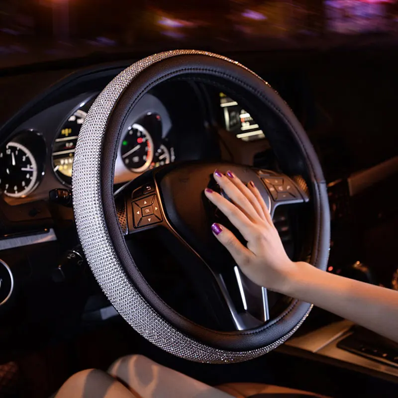 Bling Bling Diamond Rhinestones Crystal Car Steering Wheel Cover PU Leather Auto Accessories Case Car Styling