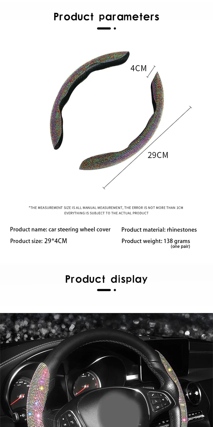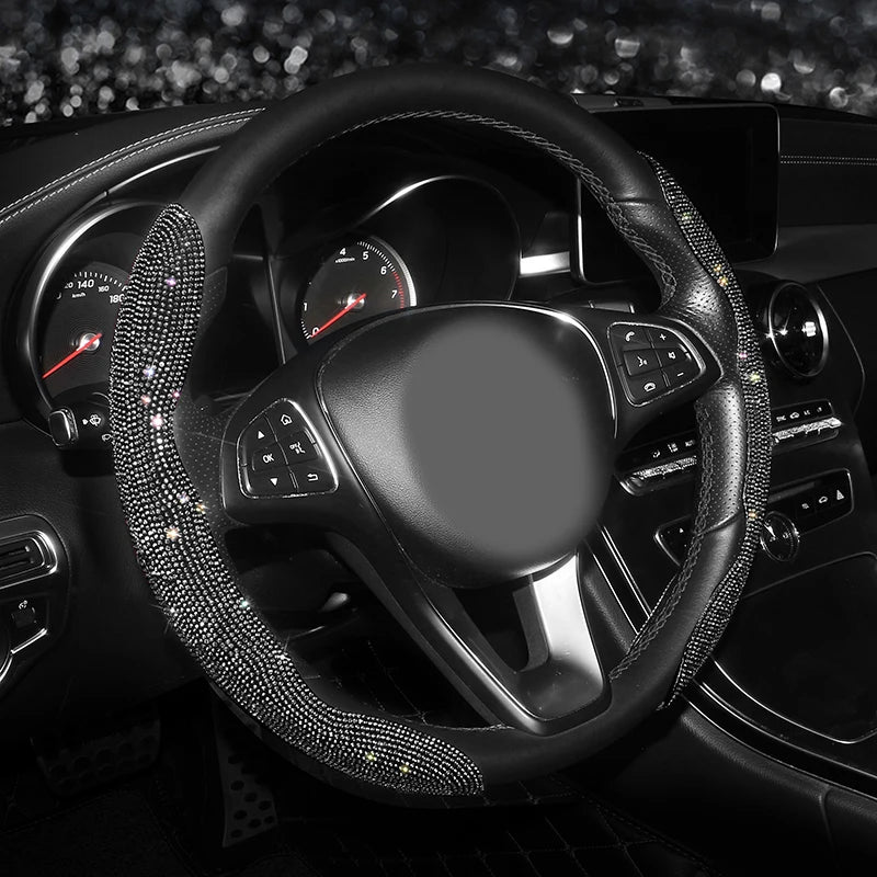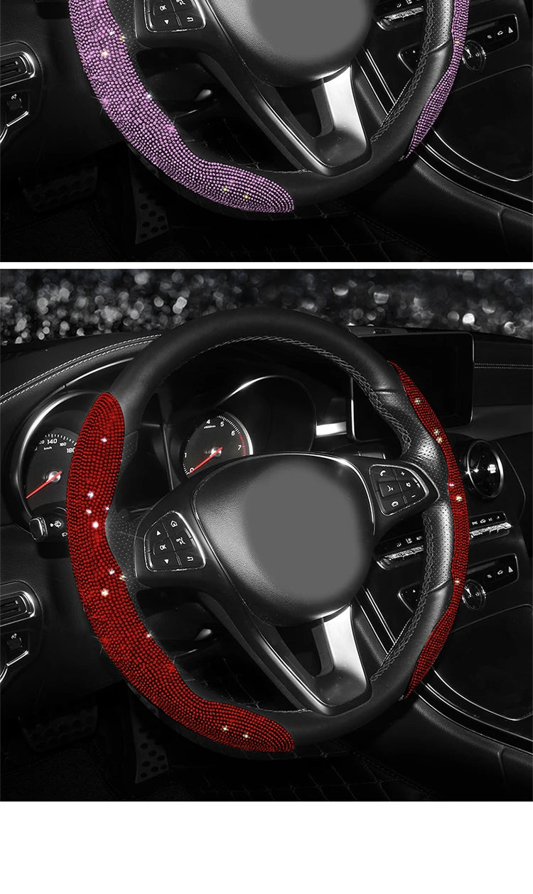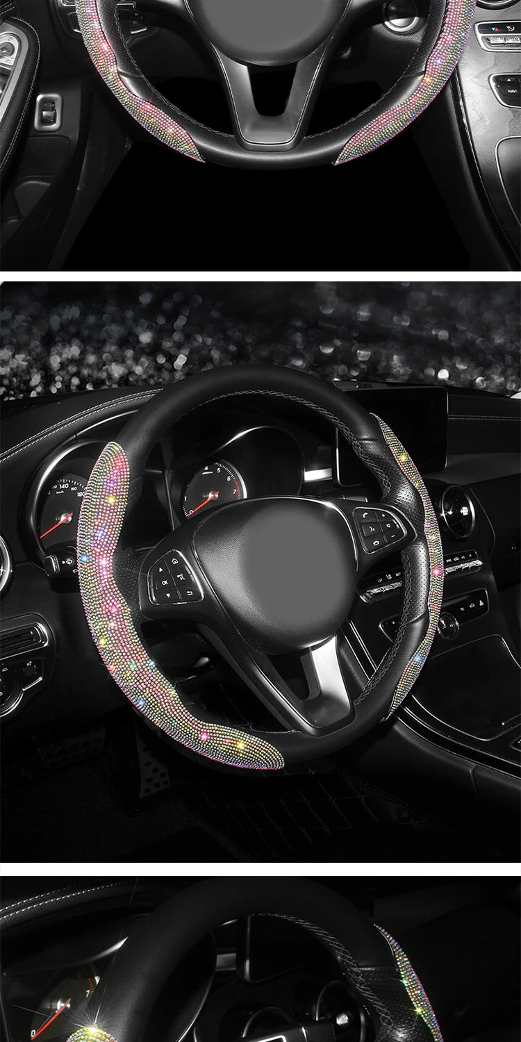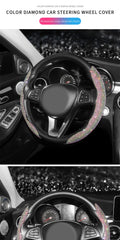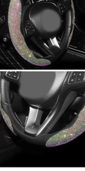 Bling Bling Diamond Steering Wheel Cover Universal Leather Sparkly Wheel Protector Anti-Slip Cover Car Accessories for Women