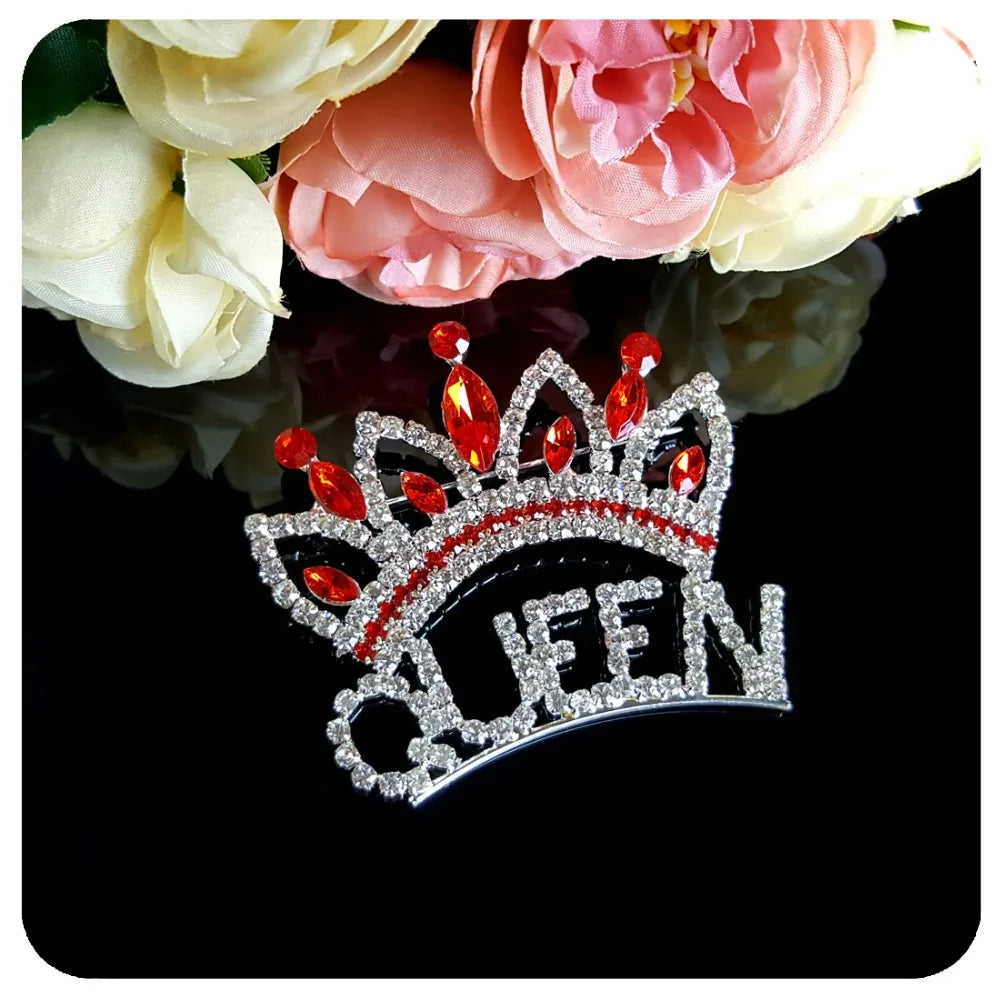 Blingbling Red Rhinestone Crown Brooch Pin for Queen Lady's Gift