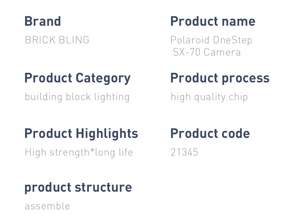 Brick Bling LED Light 21345 Set for Polaroid OneStep SX-70 Camera Building Blocks (Lighting Accessories Only)