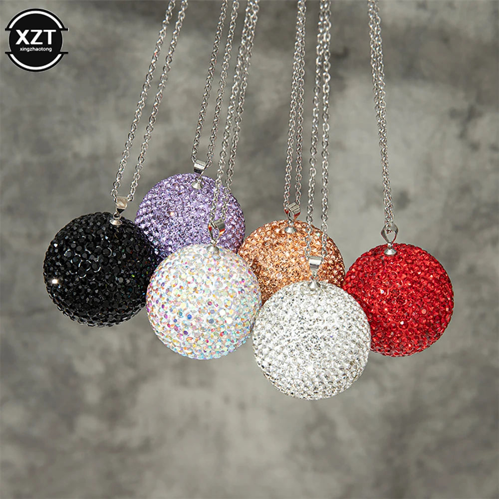 Car Crystal Ball Pendant Car Rearview Mirror Pendant Bling Bling Rhinestone Ball Car Interiot Decoration Car Accessories