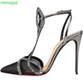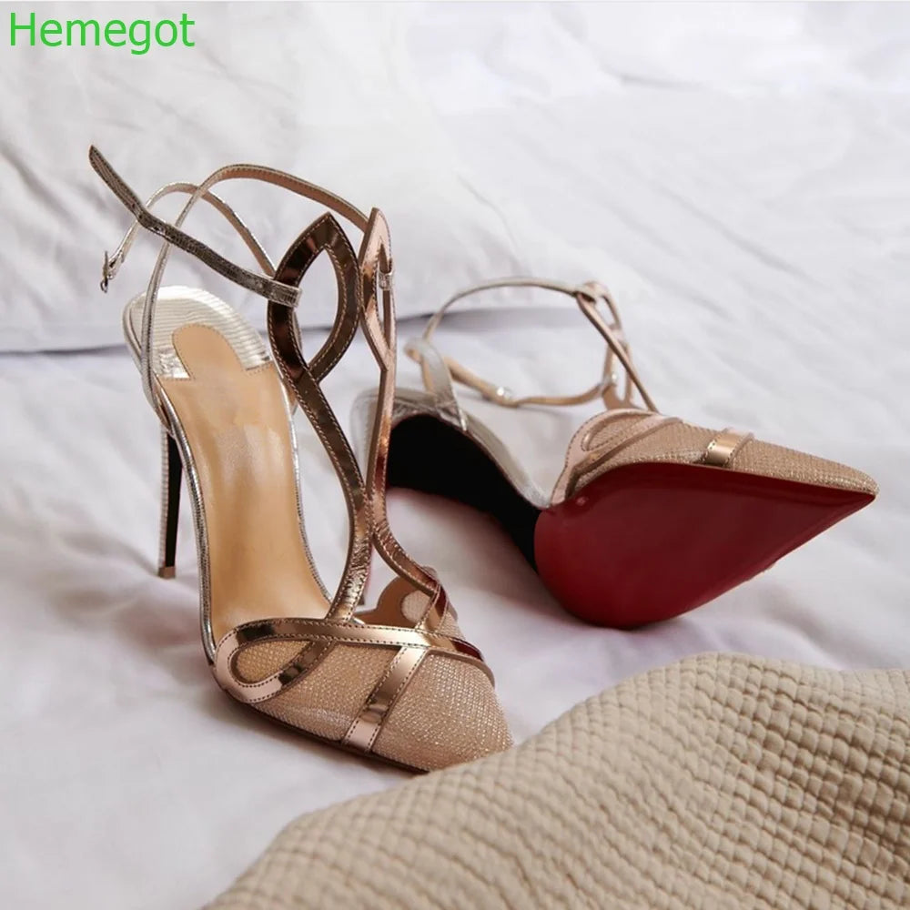 Crystal Bling Bling Ladies Stiletto Heels Pointed Mesh Hollow Belt Buckle Pumps 2025 Summer New Fashion Sexy Catwalk Sandals