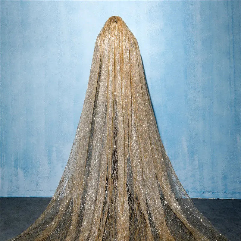 Gold 3Meters Wedding Bridal Veil Long Bride Luxurious Cathedral Veil Glitters Shiny Bling Bling Veil Sequins Accessories