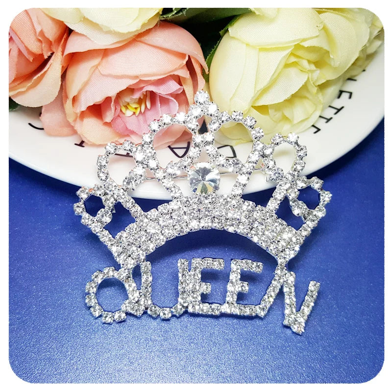 GRANDBLING New Arrival Blingbling Clear Crystal Queen Crown Brooch Jewelry