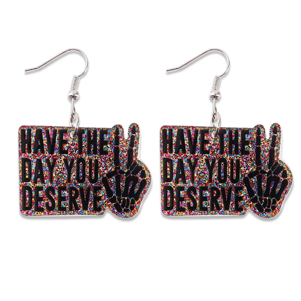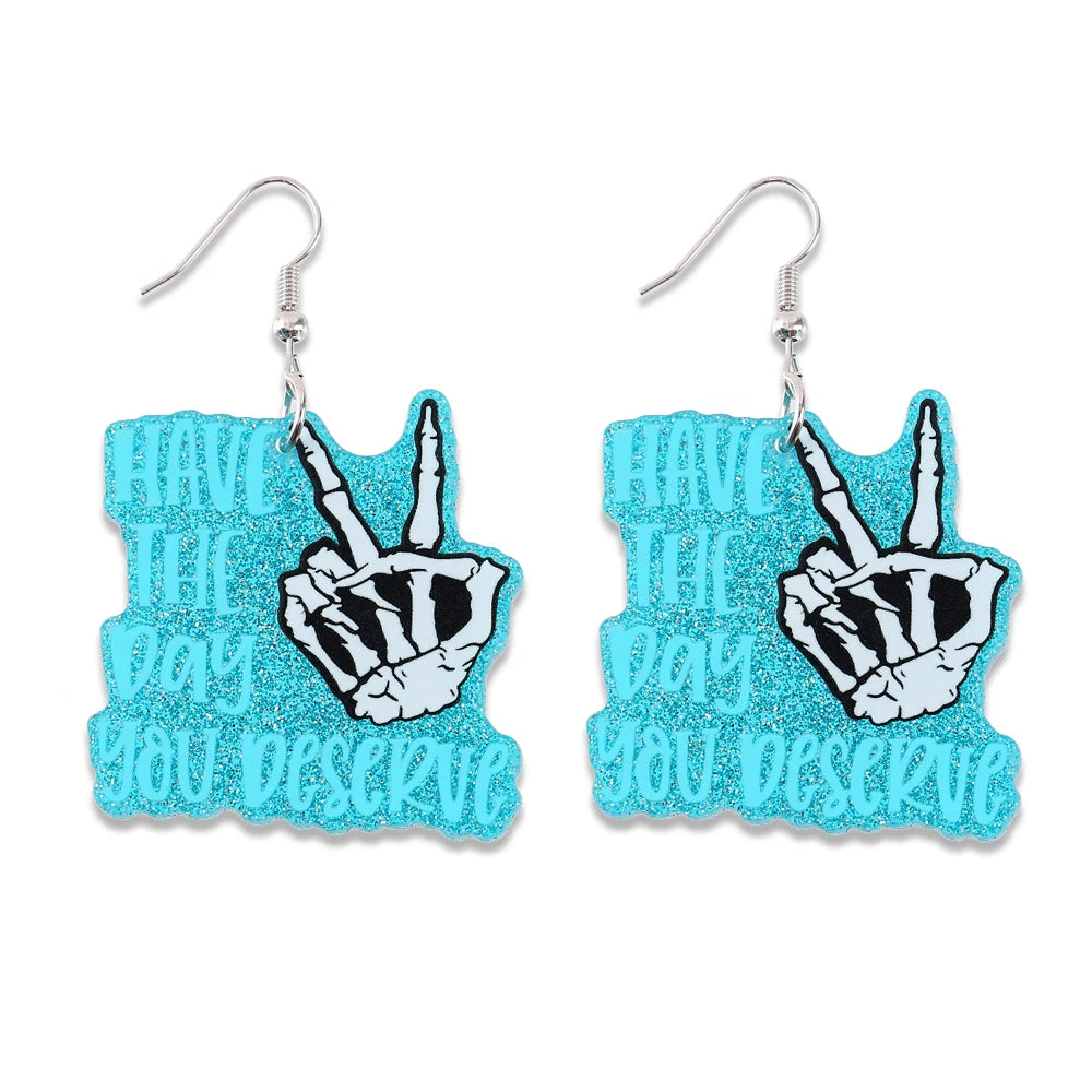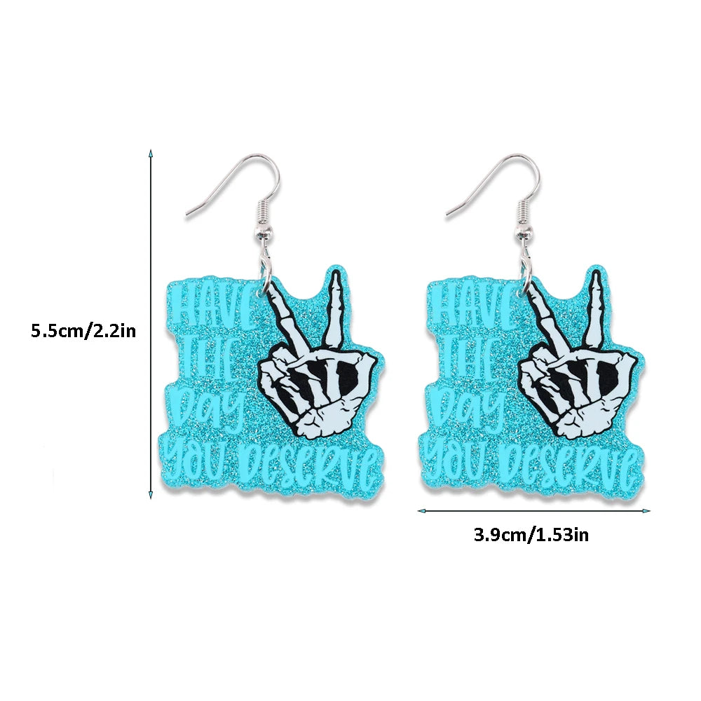 "have the day you deserve" Halloween Acrylic Earrings Bling Acrylic Gothic Style Earrings for Men and Women