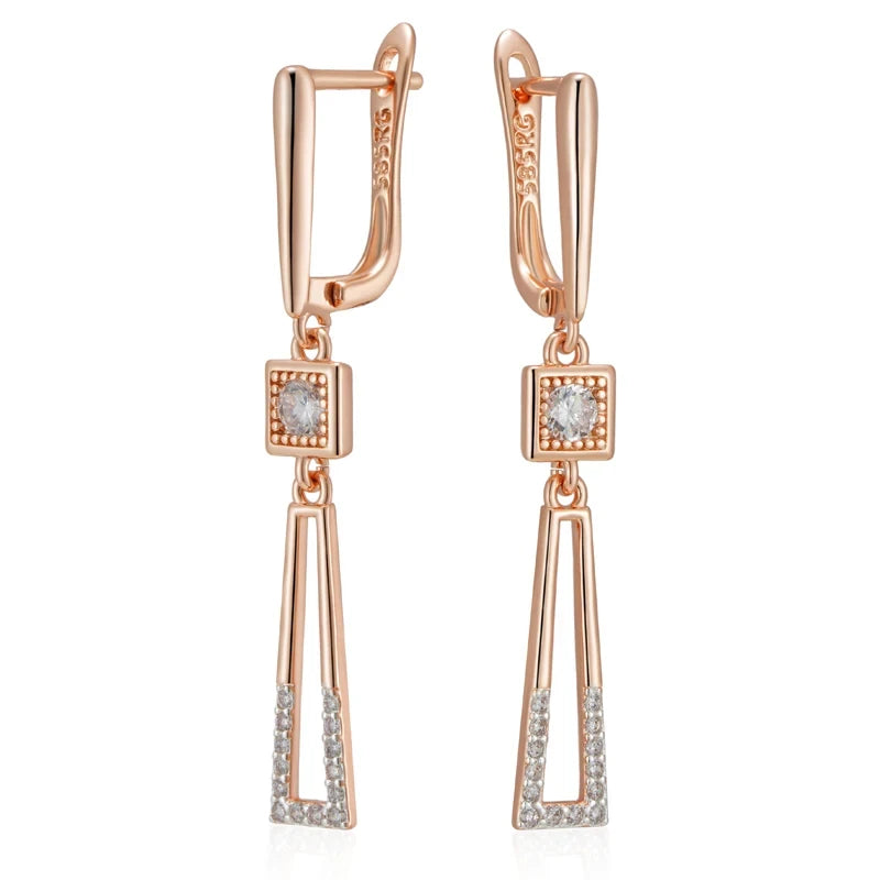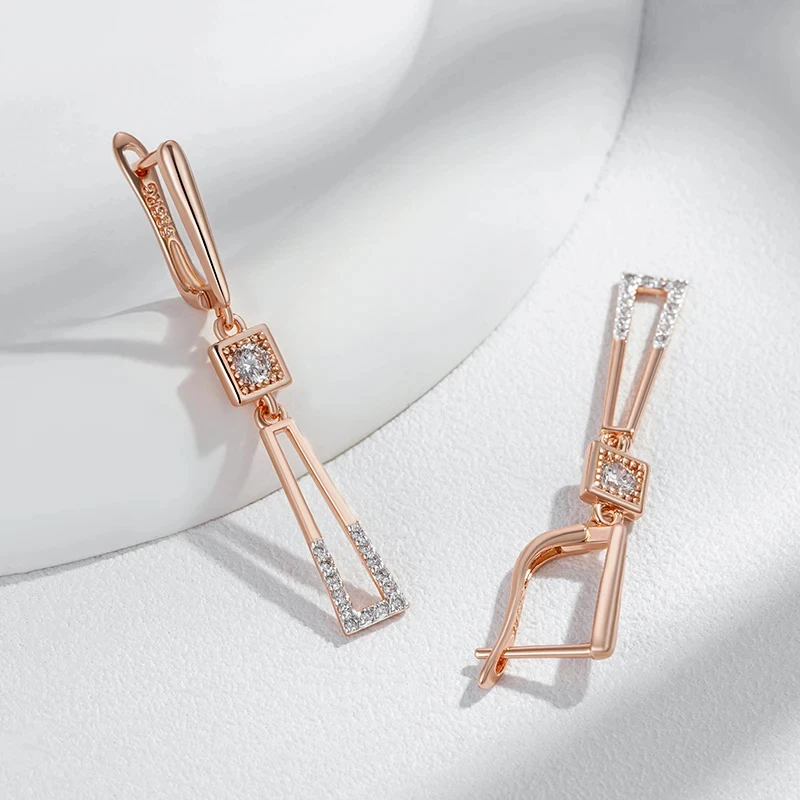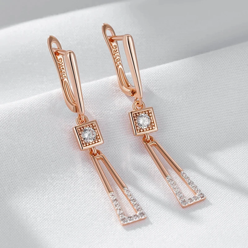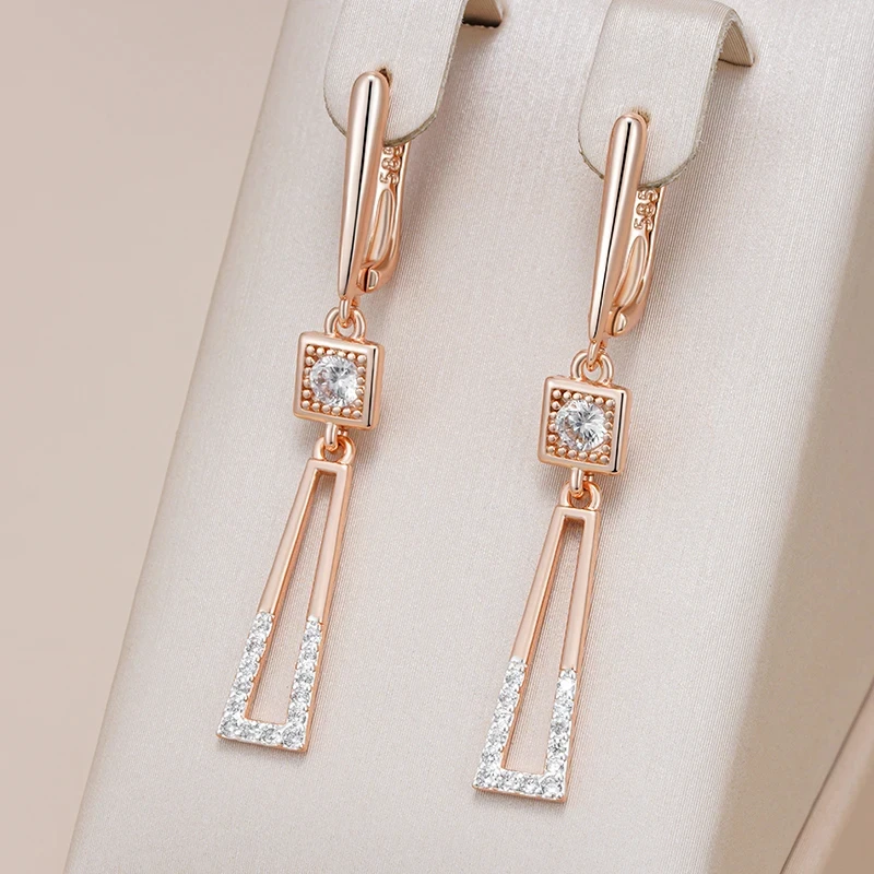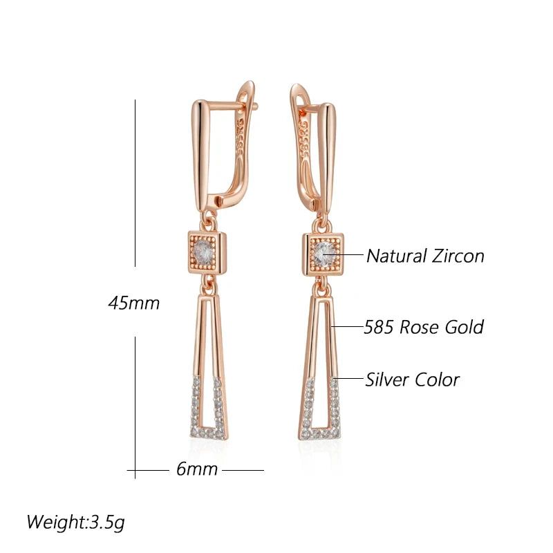 Hollow Triangle Silver Color White Zircon Long Earrings for Women 585 Golden Blingbling Accessories Personality Costume Jewelry