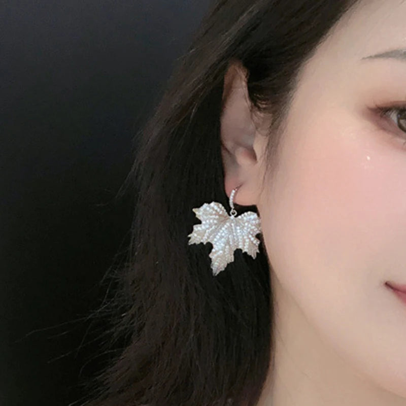 Huitan Bling Bling Leaf Shaped Dangle Earrings for Women Hyperbole Ear Hanging Accessories Cocktail Party Statement Jewelry New