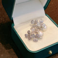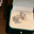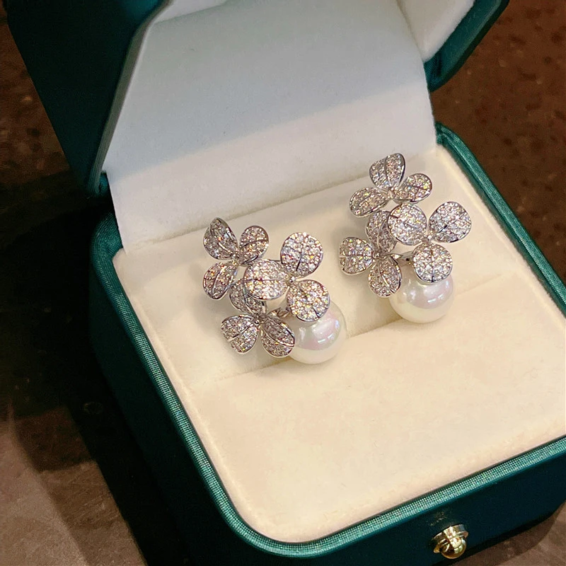 Huitan Flowers Earrings Inlaid Imitation Pearl Aesthetic Accessories for Women Bling Bling Cubic Zirconia Wedding Trendy Jewelry