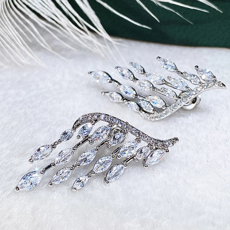 Huitan Gorgeous Angel Wing Shaped Stud Earrings for Women Full Bling Bling White CZ Stone Wedding Party Fashion Accessories 2021