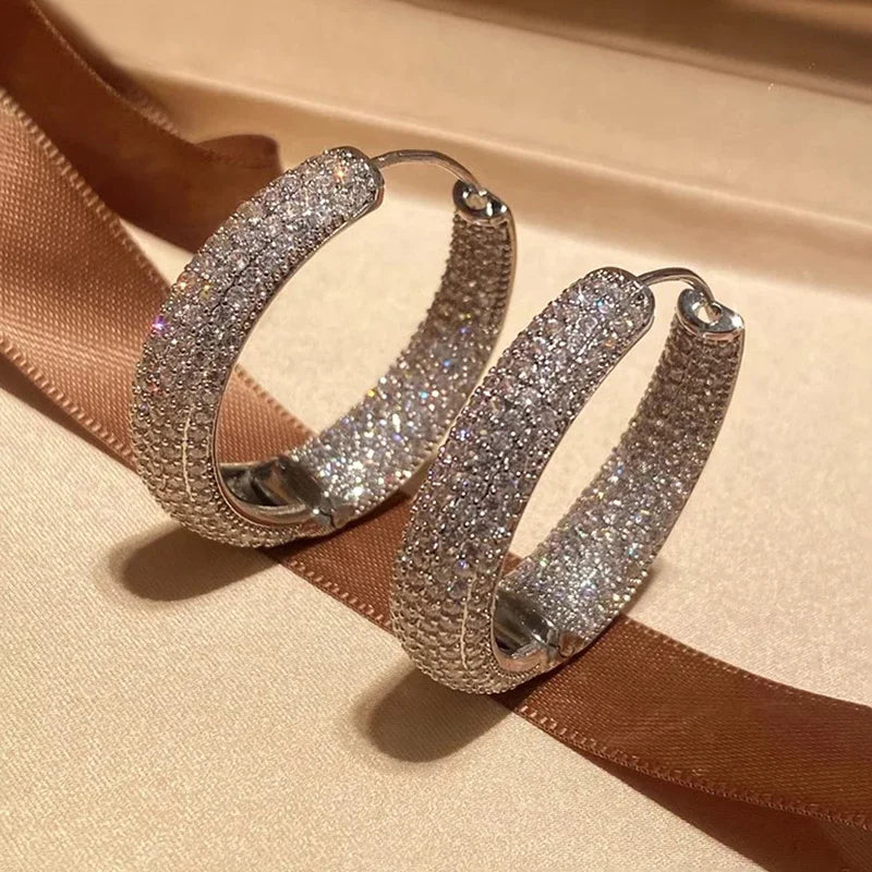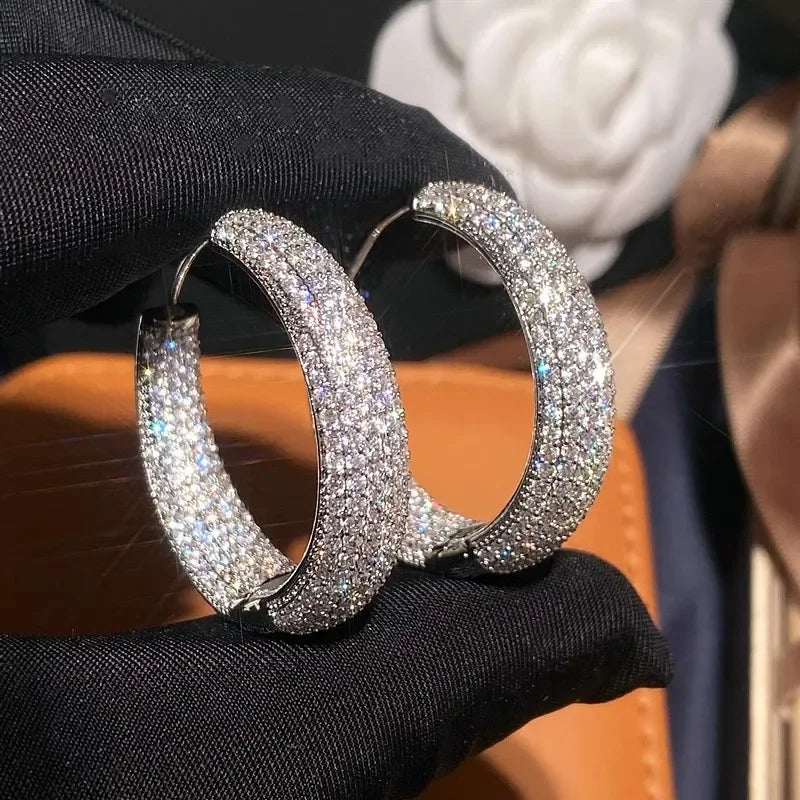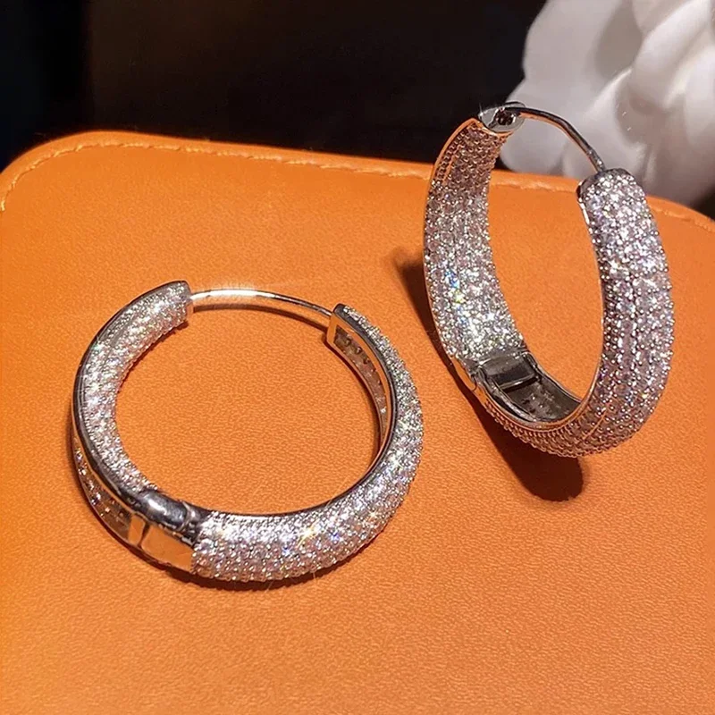 Huitan Luxury Aesthetic Hoop Earrings Full Bling Bling Cubic Zirconia for Women Sparkling Noble Party Jewelry Trendy Accessories