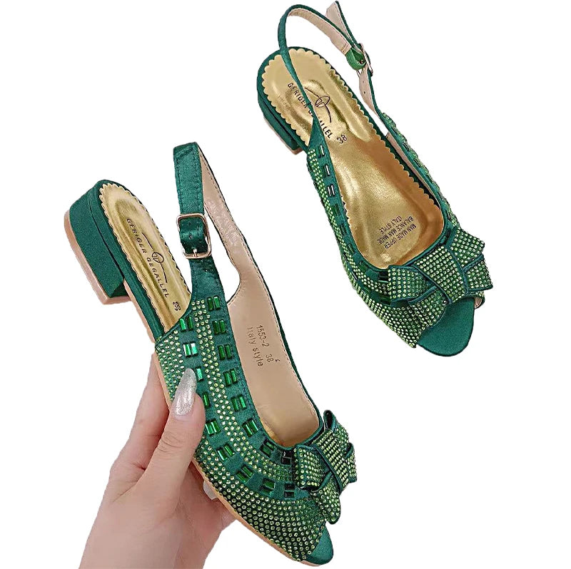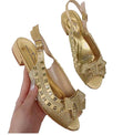 Italian Stylish Wedge Sandals Designer Shoes 2023 Summer Chunky Wedge Heel Bowknot Bling Bling Rhinestone Lady Thick Heel Shoe