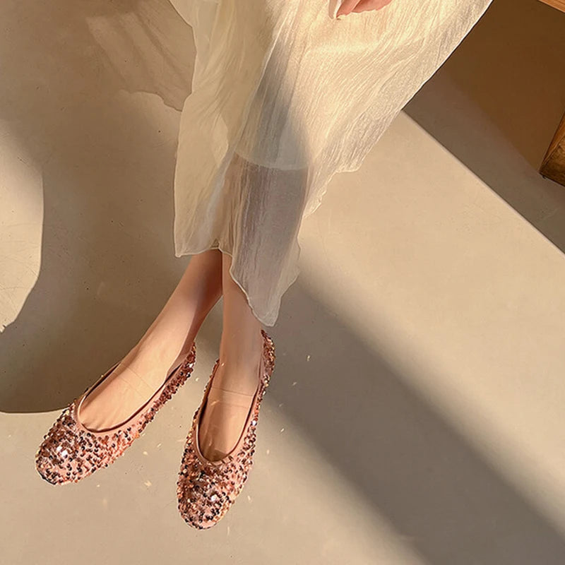 JOZHAMTA Size 34-43 Women Sparkly Glitter Ballet Flats Shoes Soft Sequin Low Heels Shoes 2025 Spring Dance Bling Bling Dress
