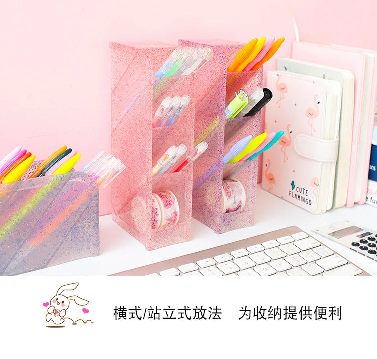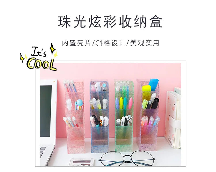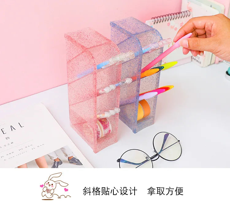 Kawaii Large Capacity Desk Pen Holder Pencil Makeup Storage Box Desktop Organizer Stand Case Office Accessories Stationery store