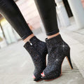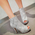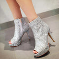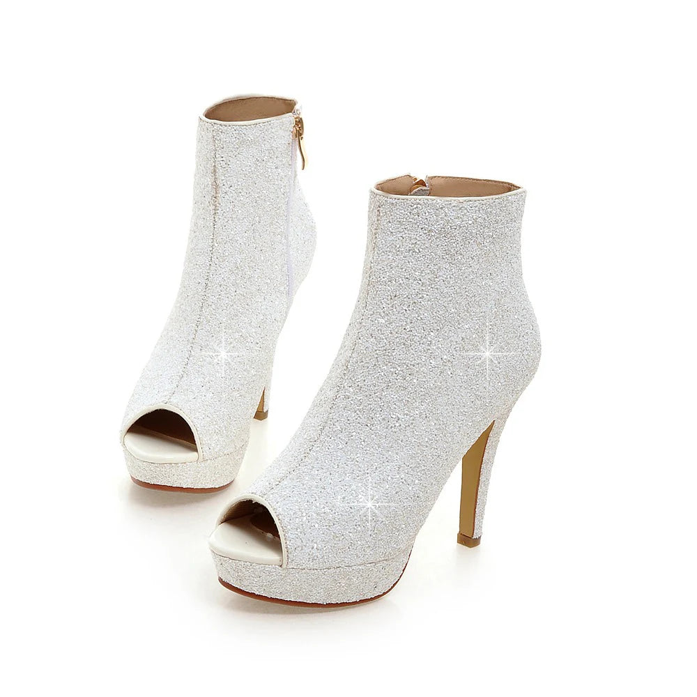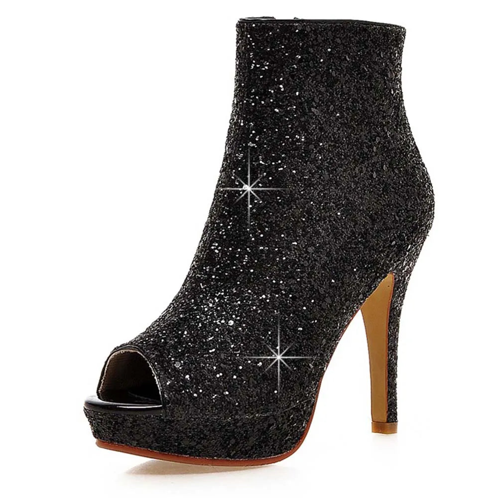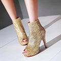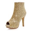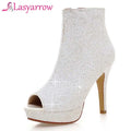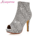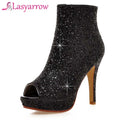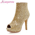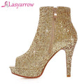 Lasyarrow Brand Women Ankle Boots Heels Female Shoes Woman Autumn Glitter Zaiiper Boots Gold Silver Bling Bling Short Boots