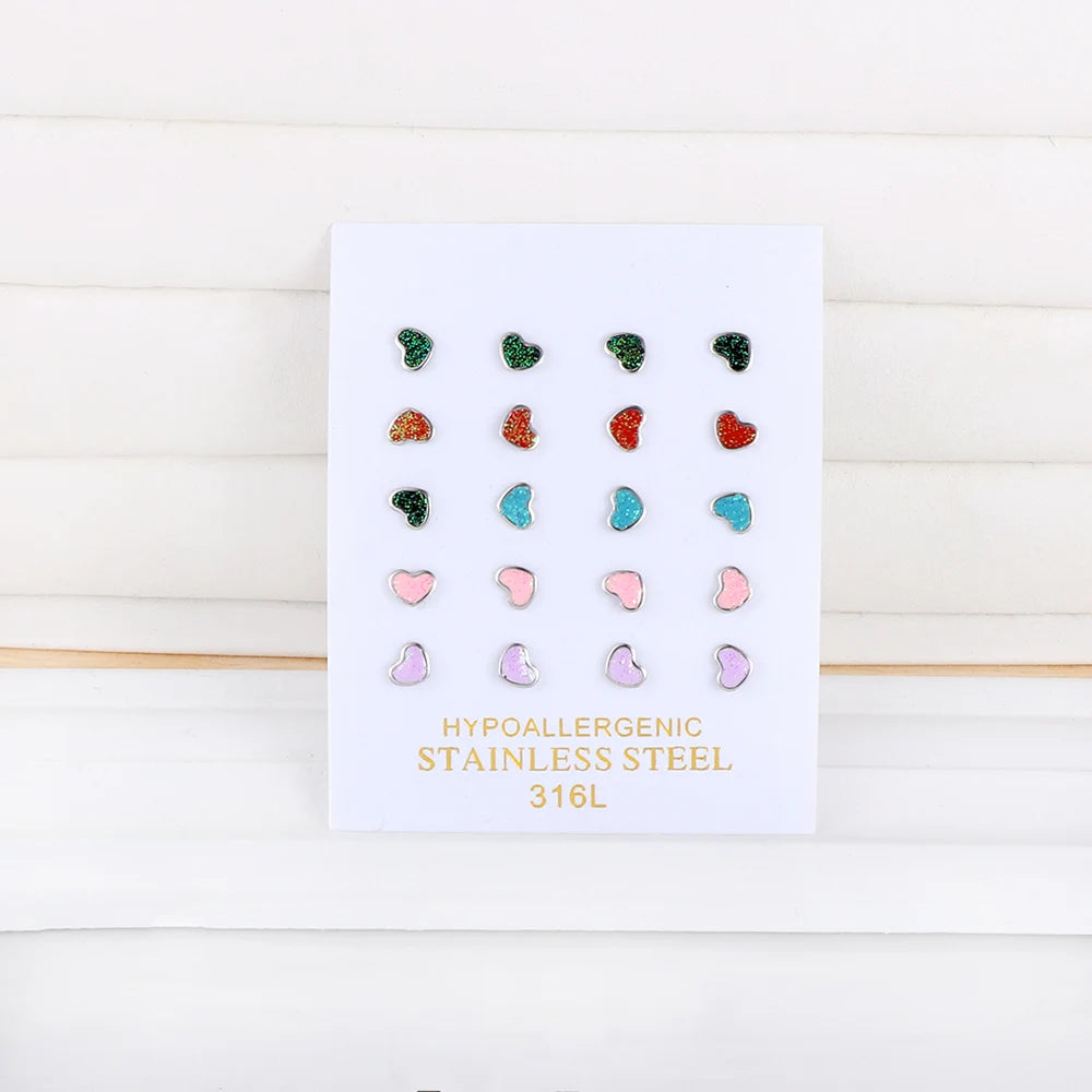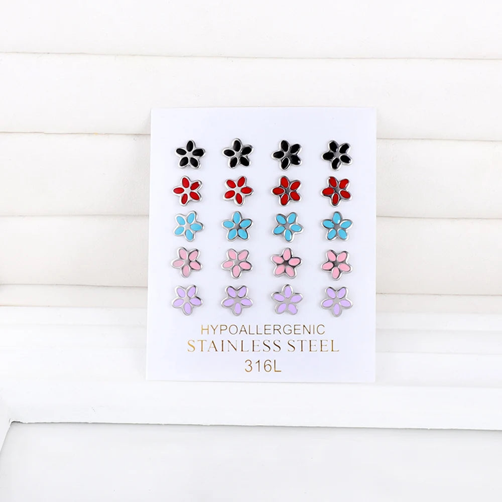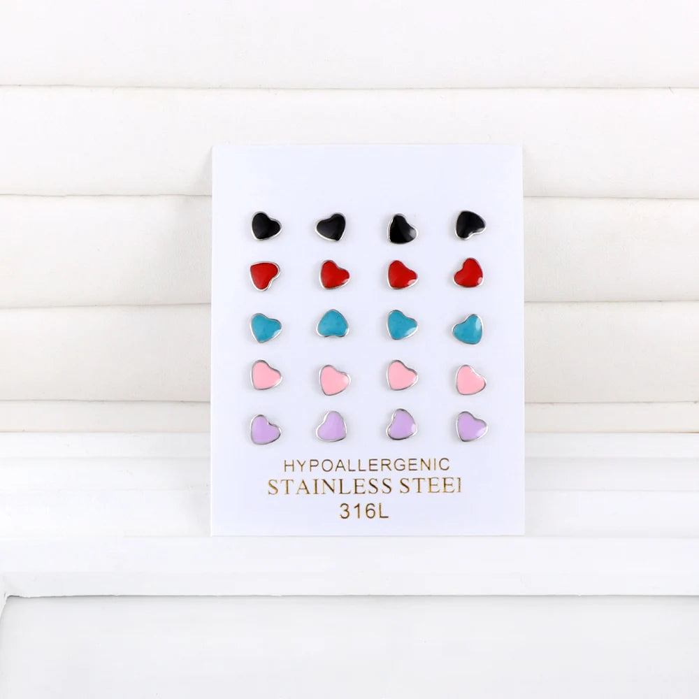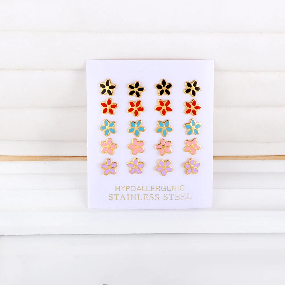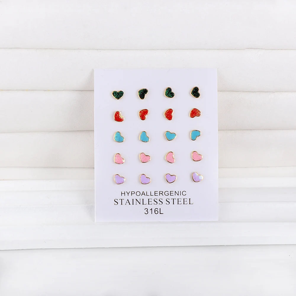 LUXUSTEEL 10Pairs Mini Colorful Butterfly Heart Flower Dragonfly Stud Earrings for Girls Stainless Steel Hypoallergenic