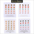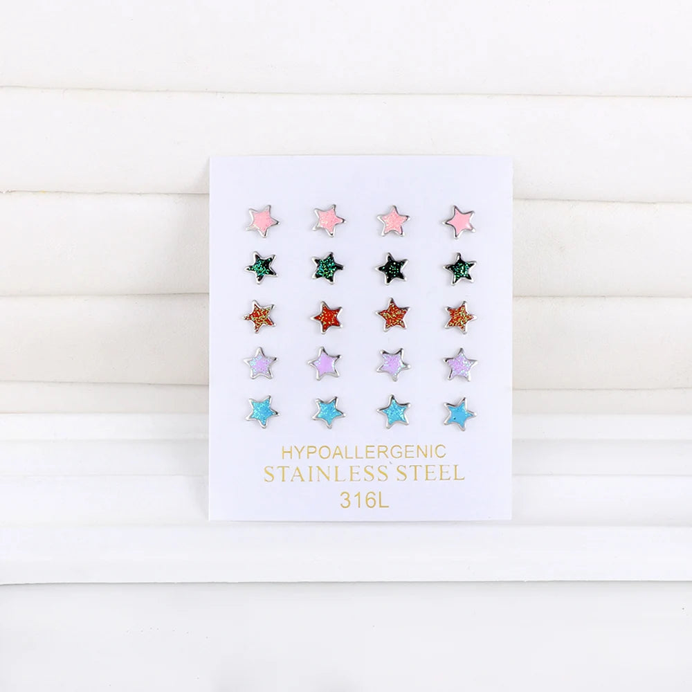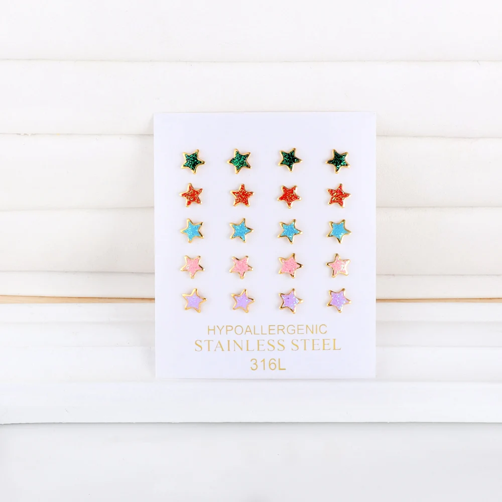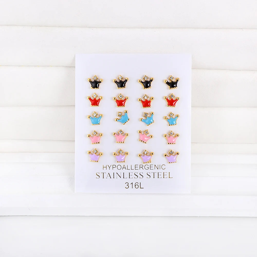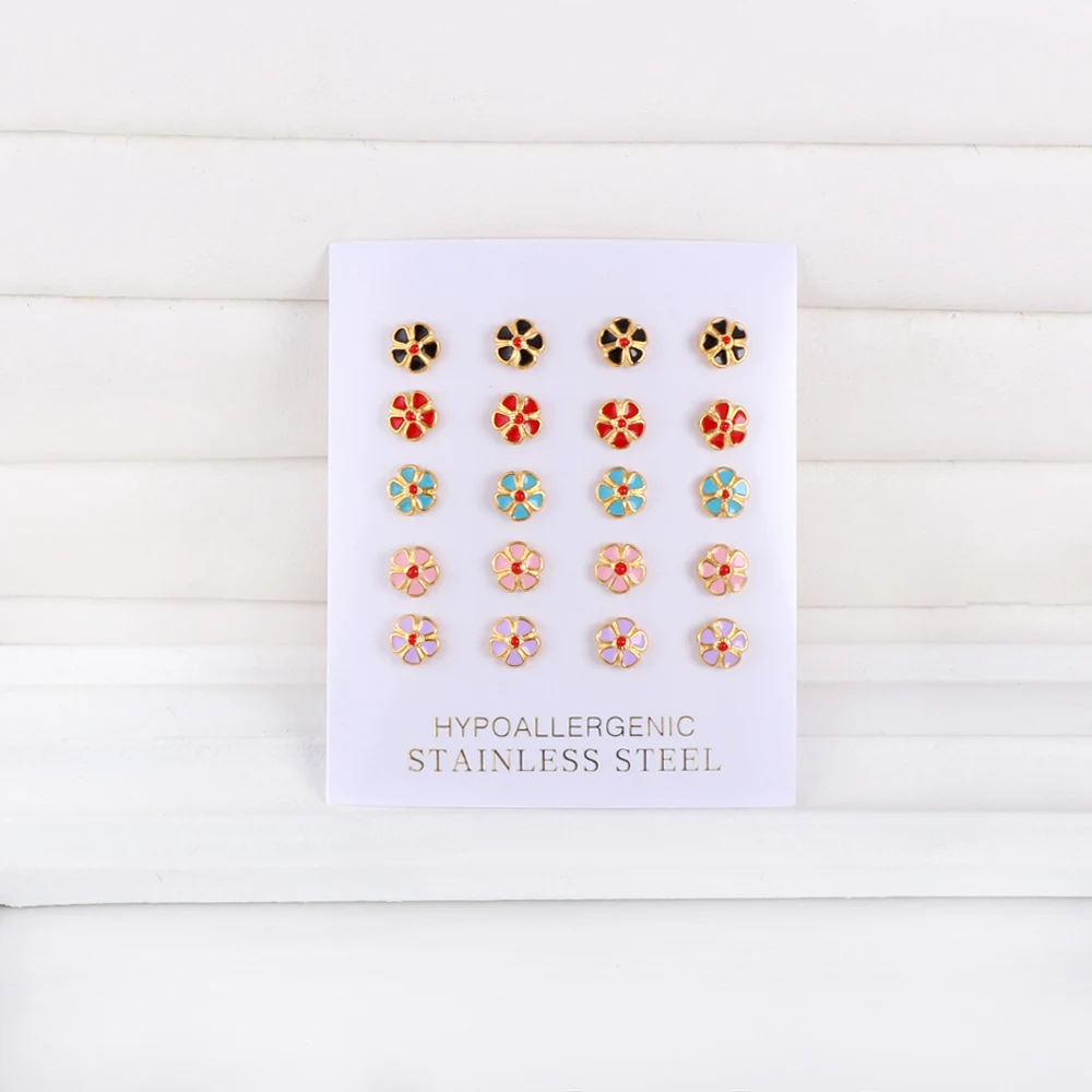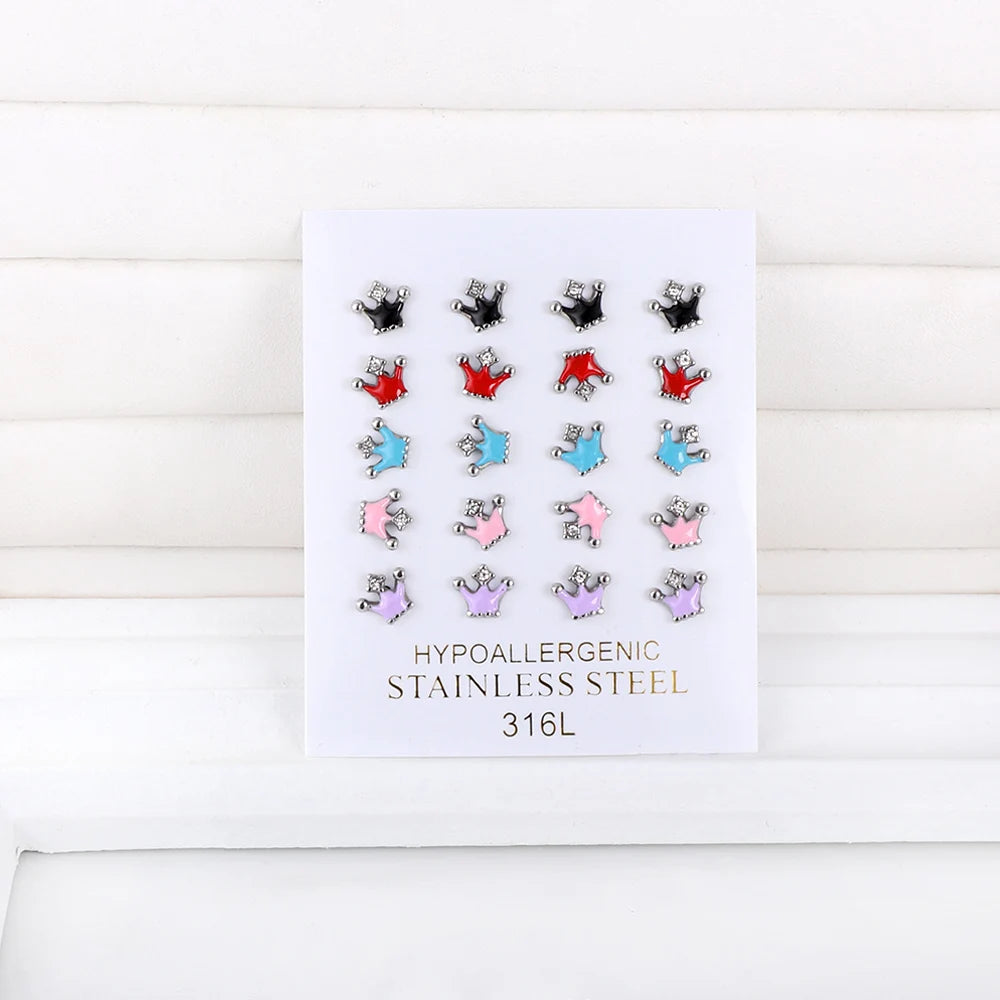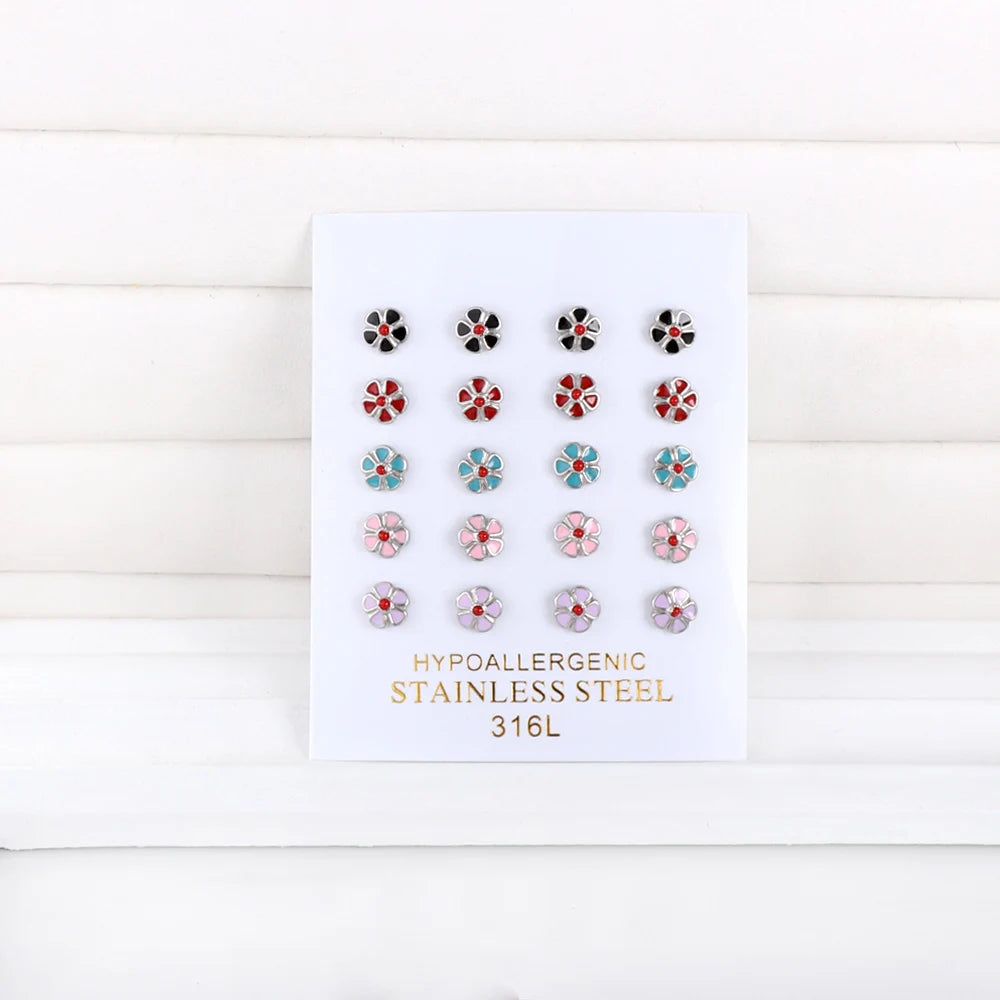 LUXUSTEEL 10Pairs Mini Colorful Butterfly Heart Flower Dragonfly Stud Earrings for Girls Stainless Steel Hypoallergenic