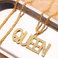 Men Women Hip Hop Bling KING QUEEN Letter Pendant Necklace Link Chain Necklaces Iced Out Charm Fashion Jewelry