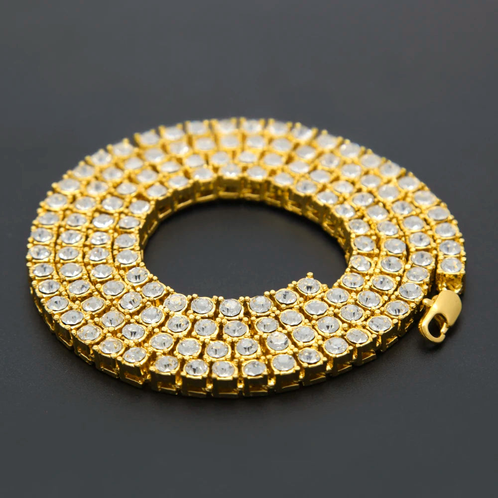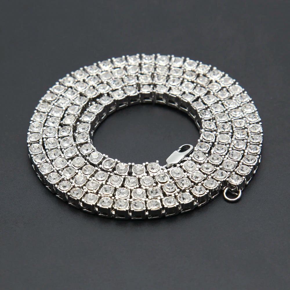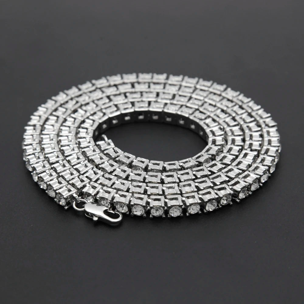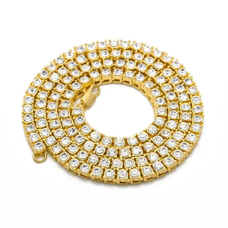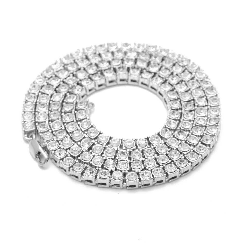 Men's Hip Hop Bling Bling Iced Out Tennis Chains 1 Row Necklaces Luxury Brand Silver/Gold Color Men Chain Fashion Jewelry