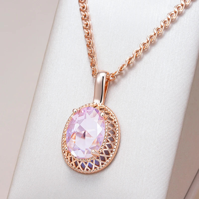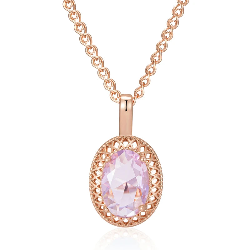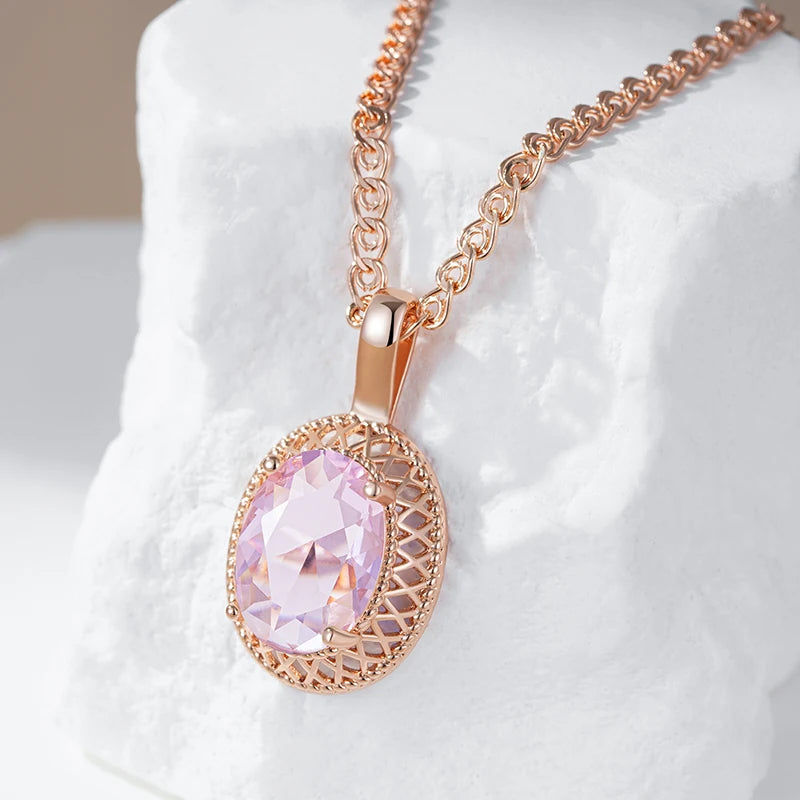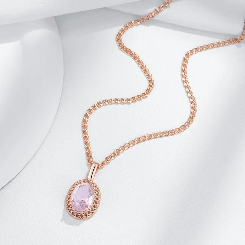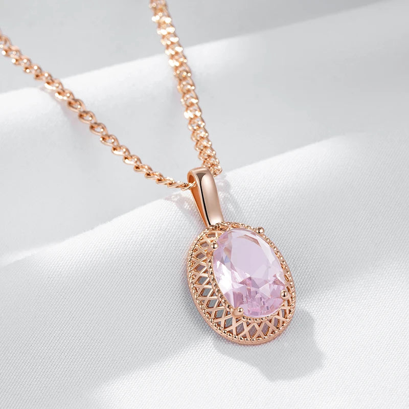 Pink Zircon Hollow Round Pendant Women Golden Necklace Double Layer Chain Rebound Clasp Comfort Jewelry Blingbling Accessories