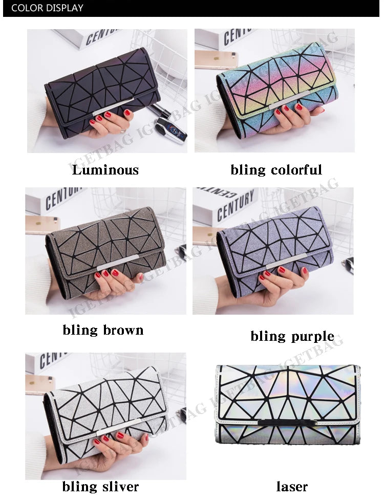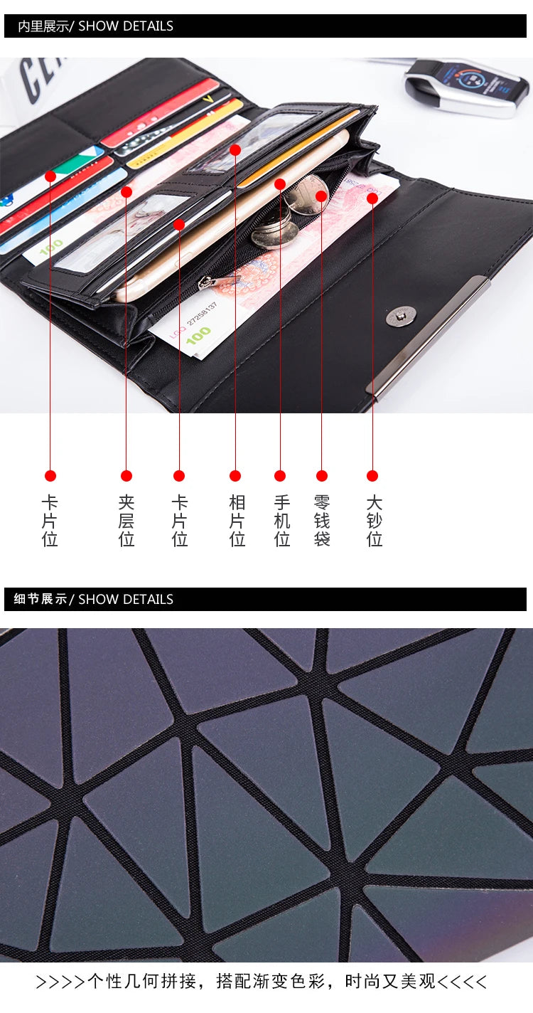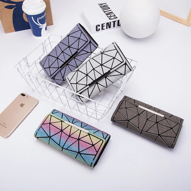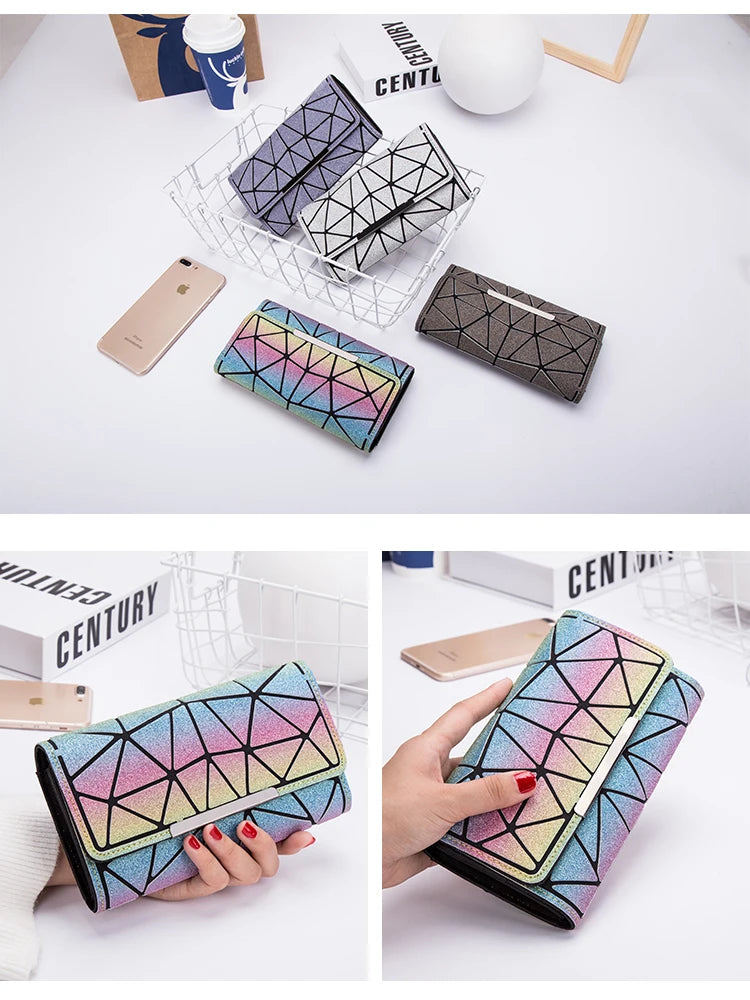 Purse bag Geometric Wallet women's Long Clutch Wallets Money Bag Three Folds Wallet Ladies Card Holder carteira portfel