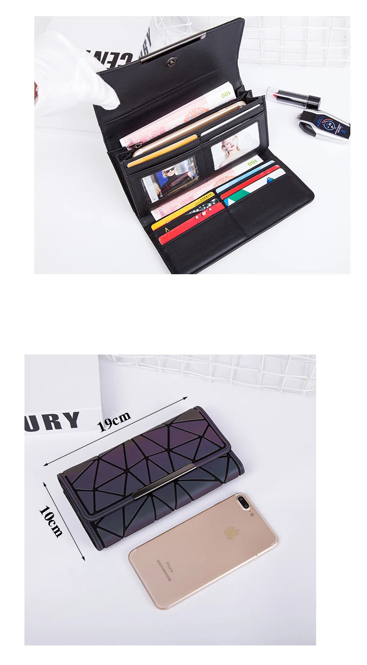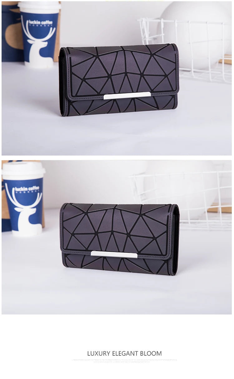 New Women fashion long clutch Luminous wallet Diamond lattice standard wallets long designer Noctilucent purse