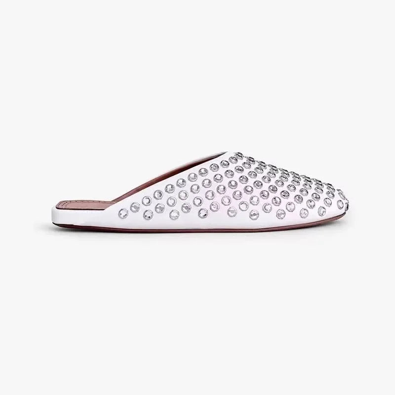 Round Wrap Toe Crystal Flat Slippers Women High Quality Bling Bling Rhinestone Mules Slippers Summer Dress Walk Shoes Woman