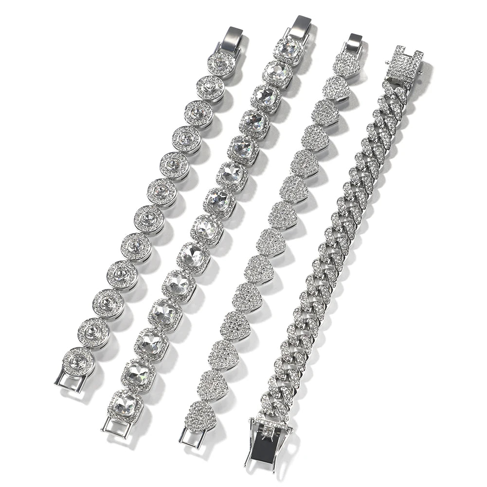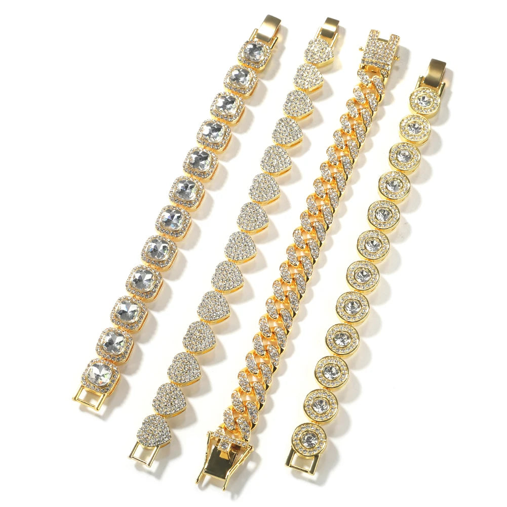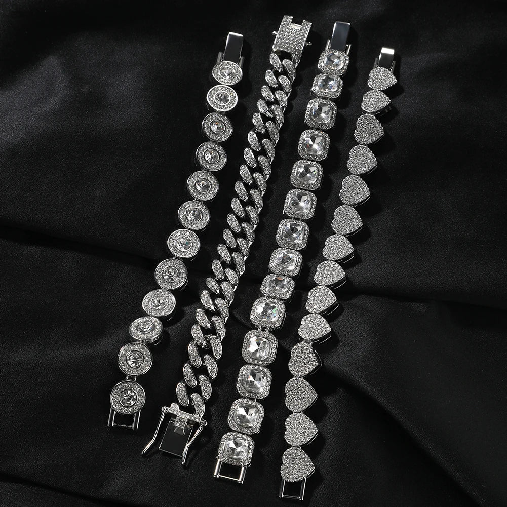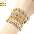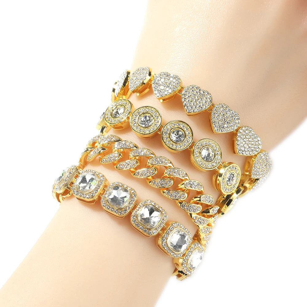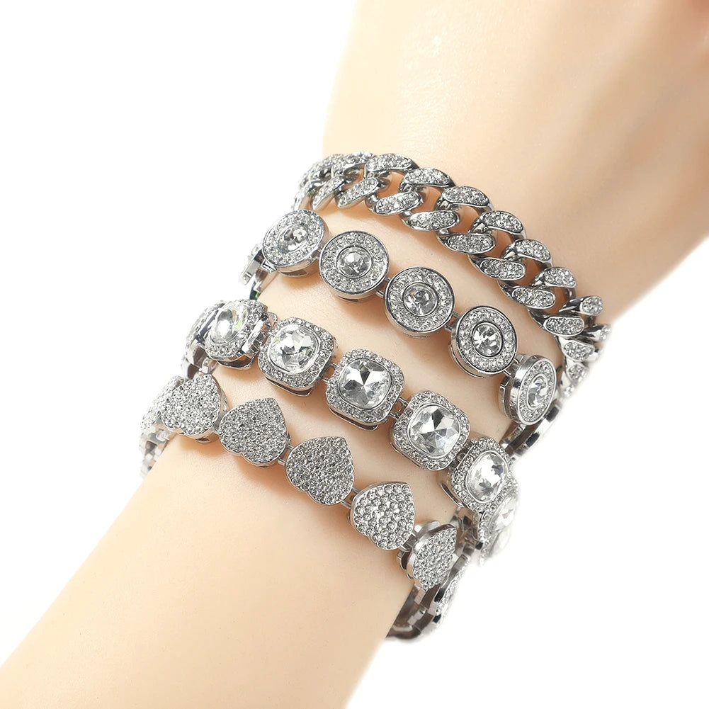 THE BLING KING 4pcs Bracelets Micro Paved Bling Rhinestones Link Chain Zinc Alloy Set Bracelet Women Hiphop Jewelry