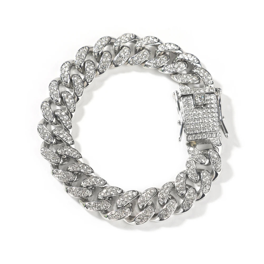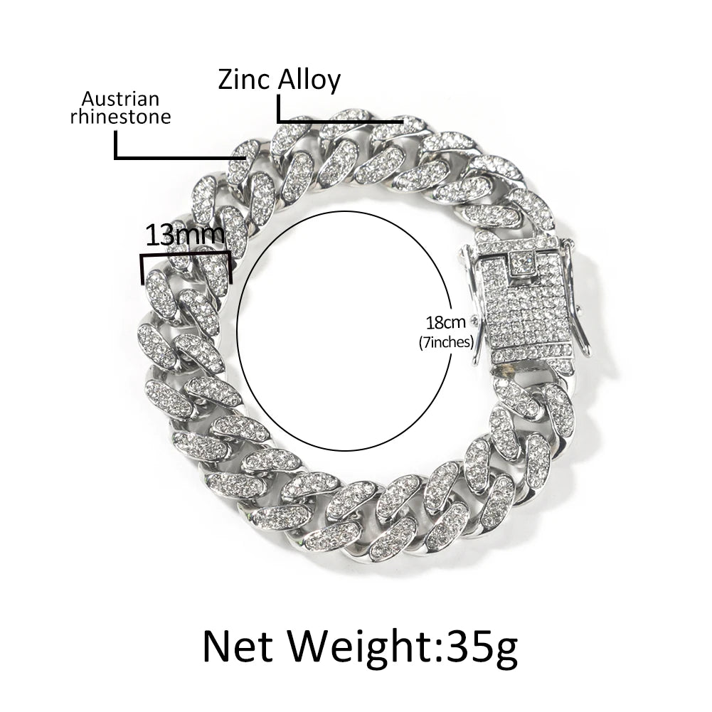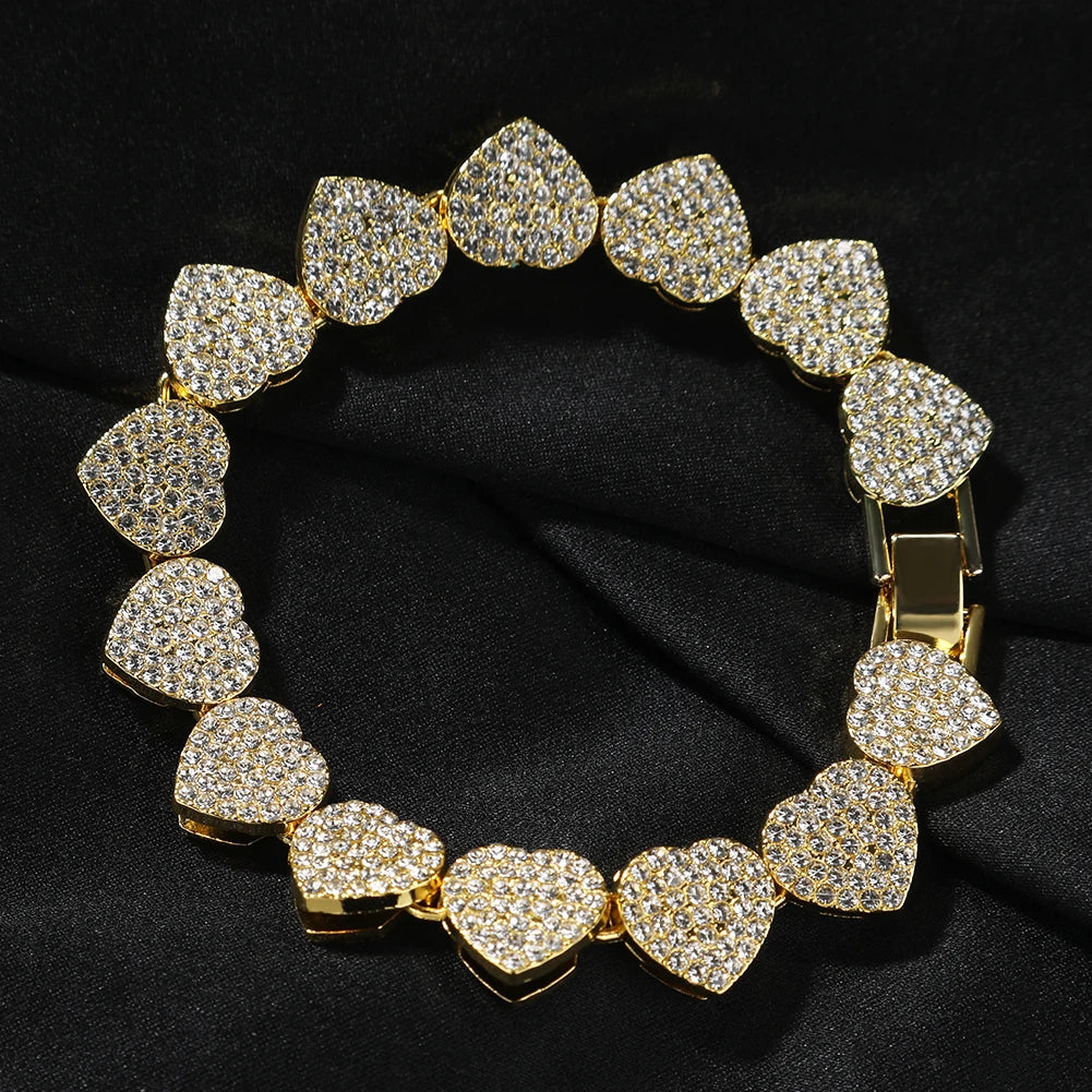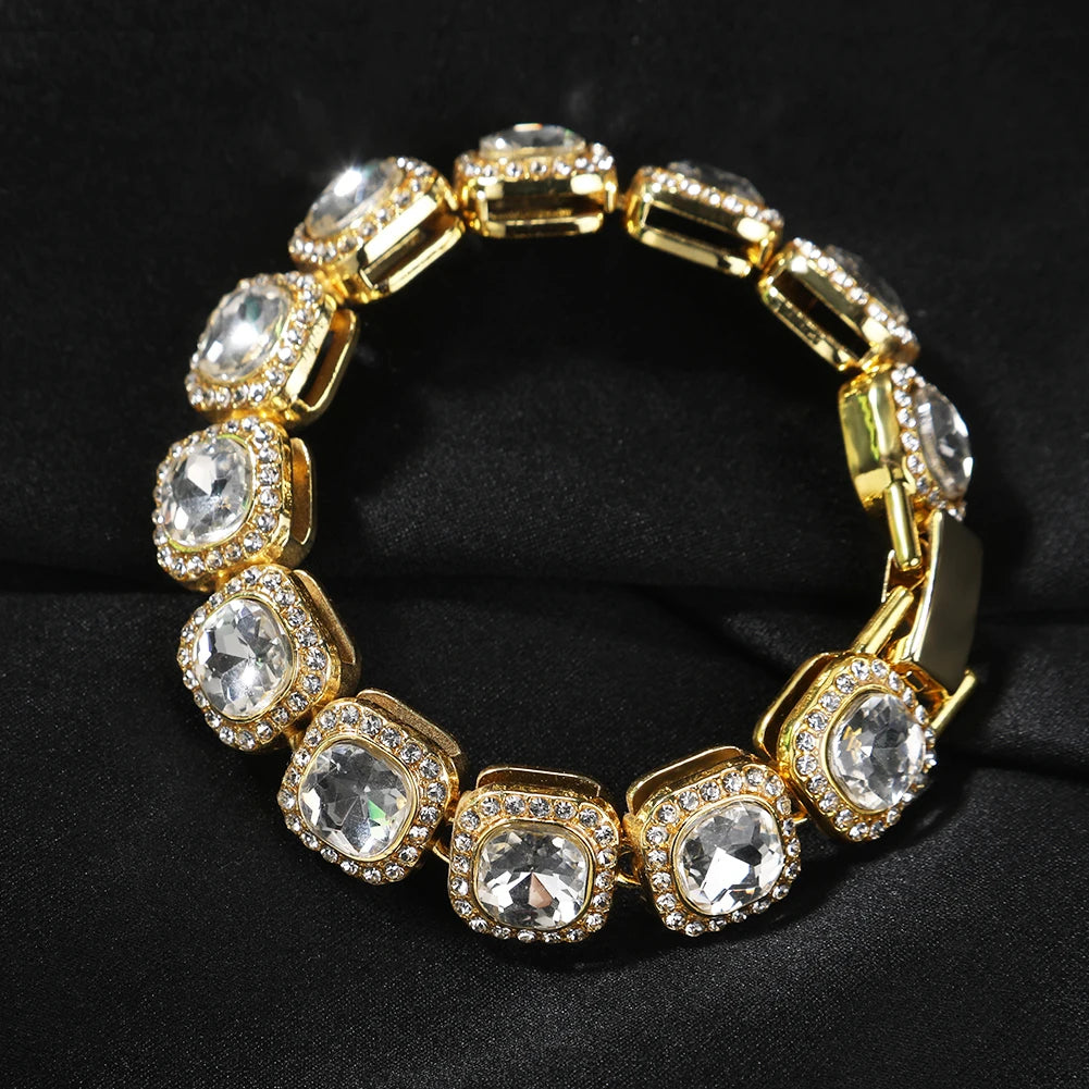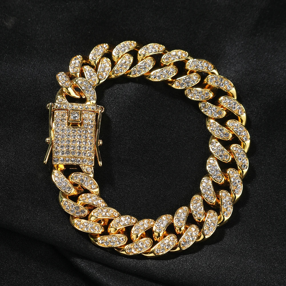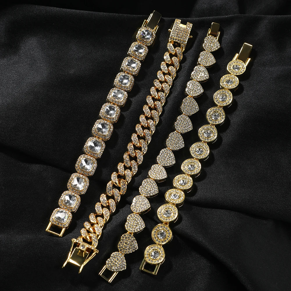 THE BLING KING 4pcs Bracelets Micro Paved Bling Rhinestones Link Chain Zinc Alloy Set Bracelet Women Hiphop Jewelry