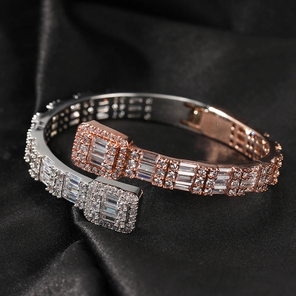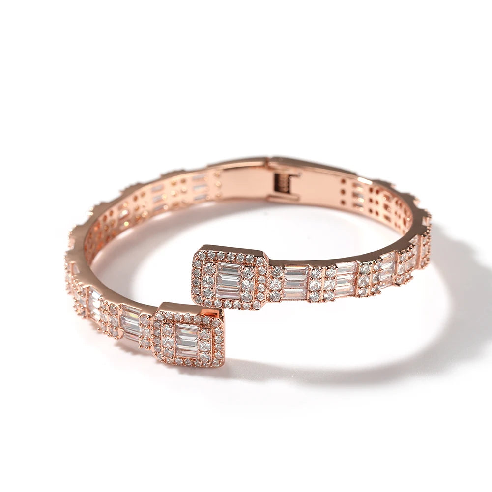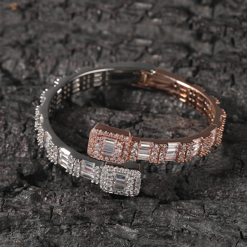 THE BLING KING 7mm Baguettecz Cuff Bangel Micro Paved Bling Square CZ Bracelet Luxury Wrist Rapper Jewelry Punk Bangle