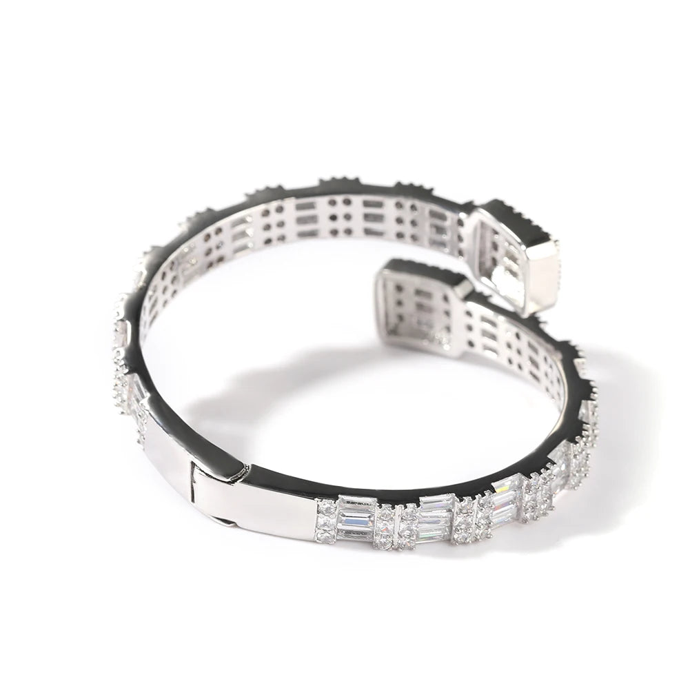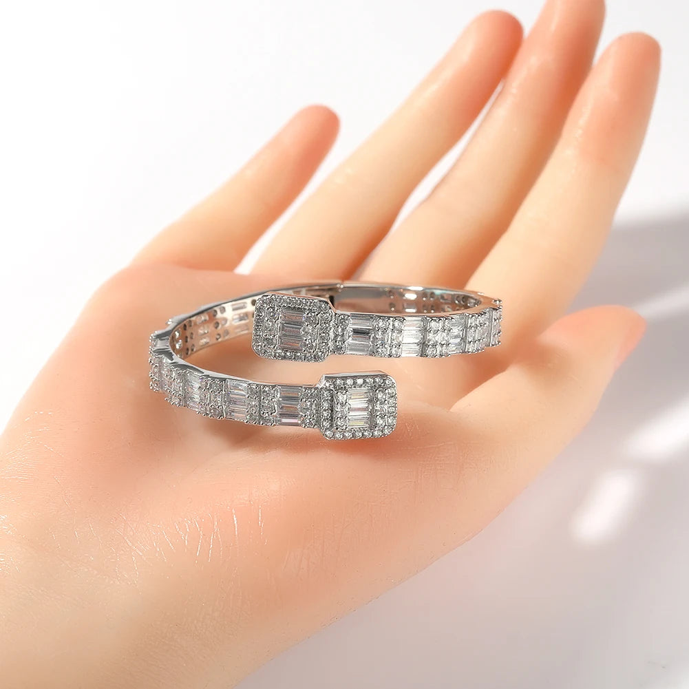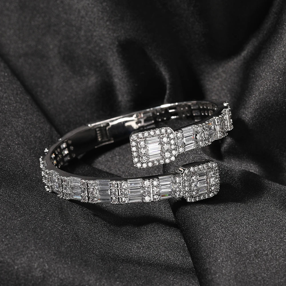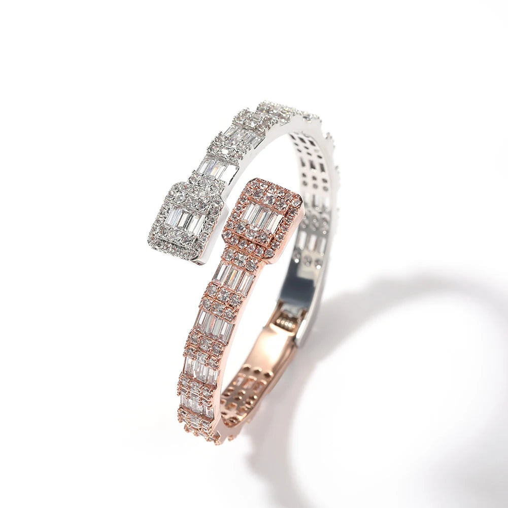 THE BLING KING 7mm Baguettecz Cuff Bangel Micro Paved Bling Square CZ Bracelet Luxury Wrist Rapper Jewelry Punk Bangle
