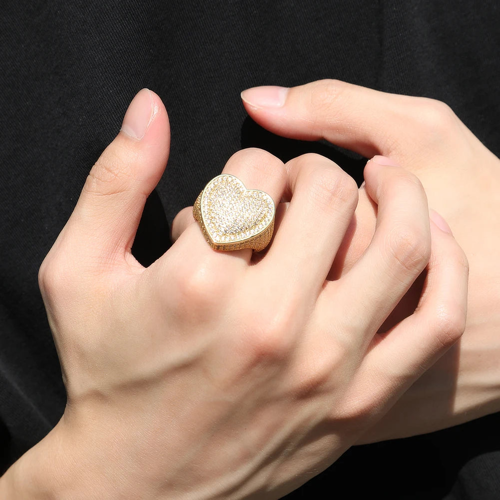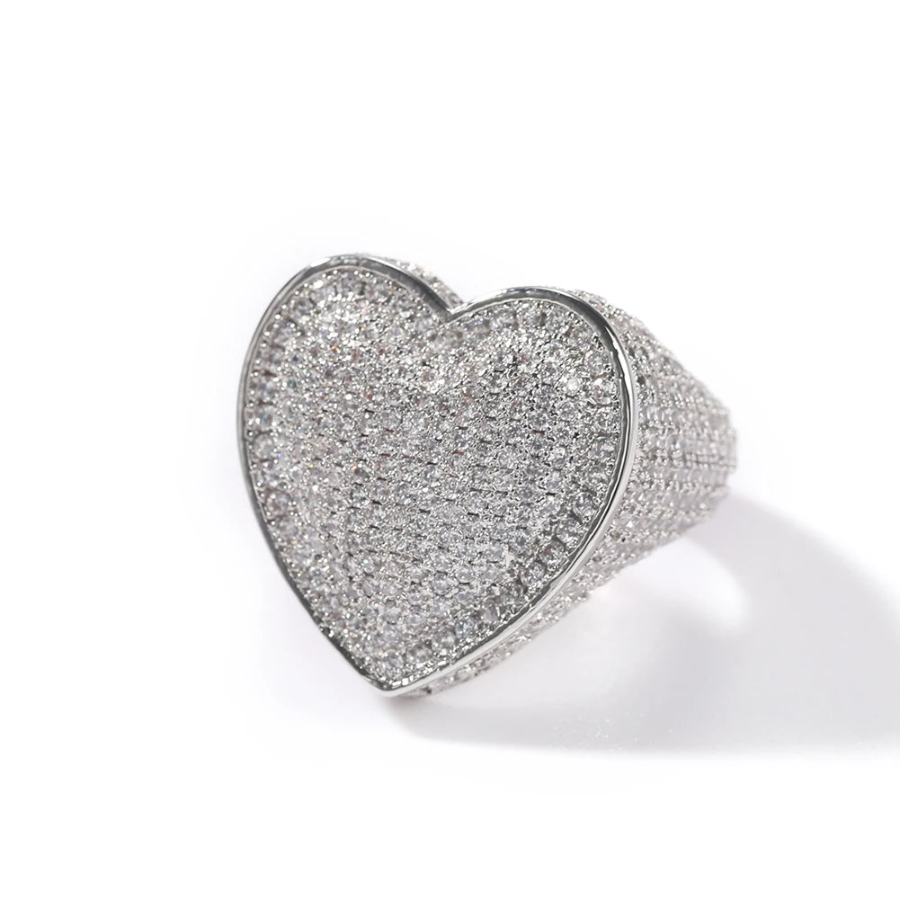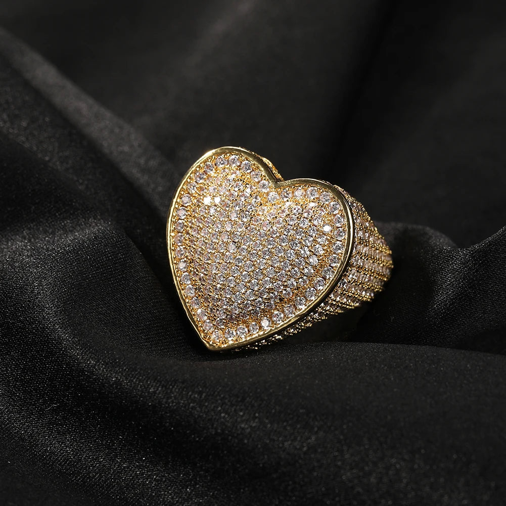 THE BLING KING Big Heart Ring Full Micro Paved Iced Out Bling Cubic Zirconia HipHop Ring Delicate Punk Jewelry For Men And Women