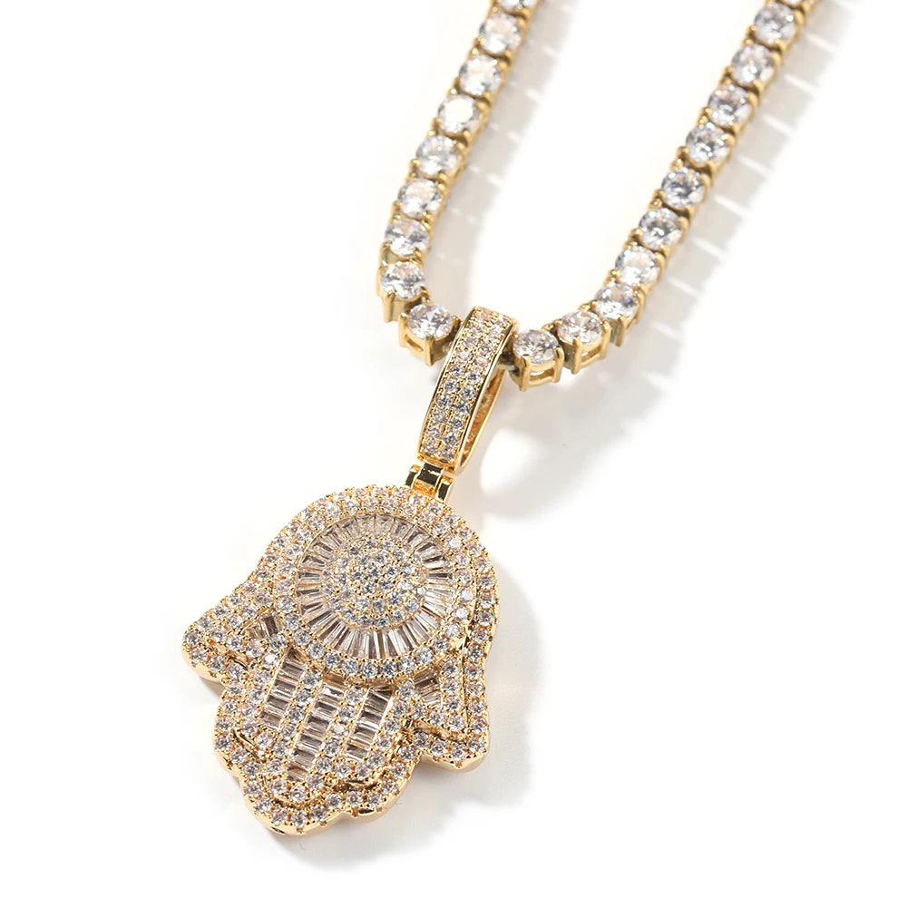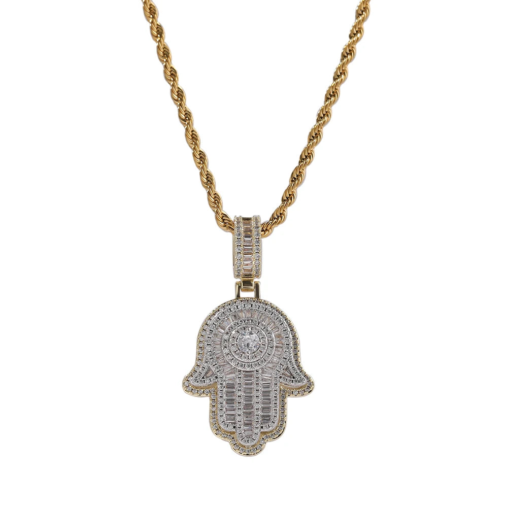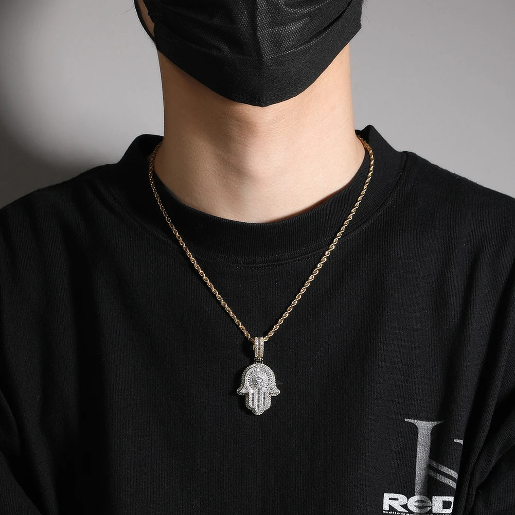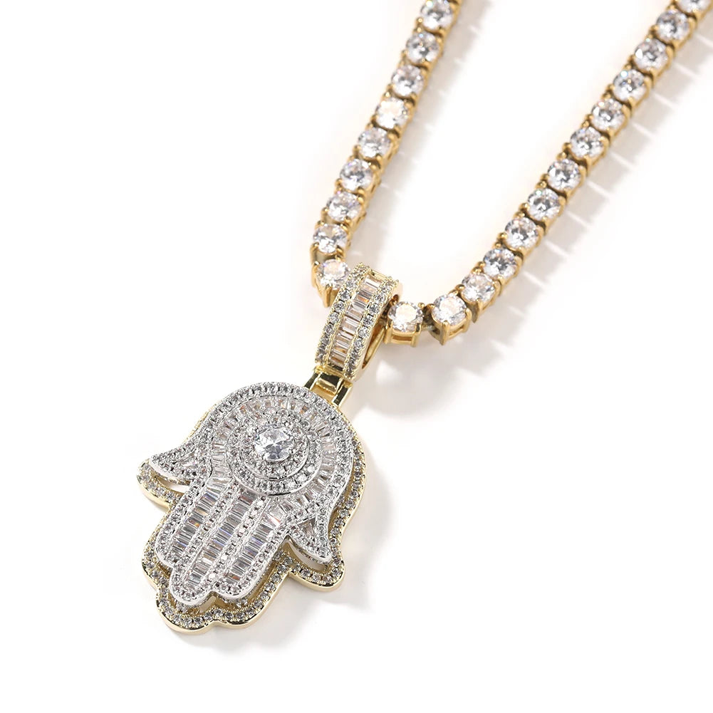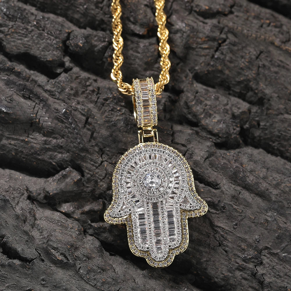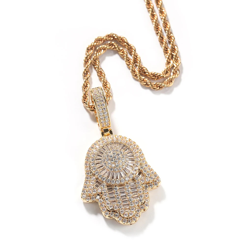 THE BLING KING Double Layer Famita Hamsa Hand Pendant Full Iced Out Bling Cubic Zirconia Necklace Luxury Hiphop Jewelry For Gift