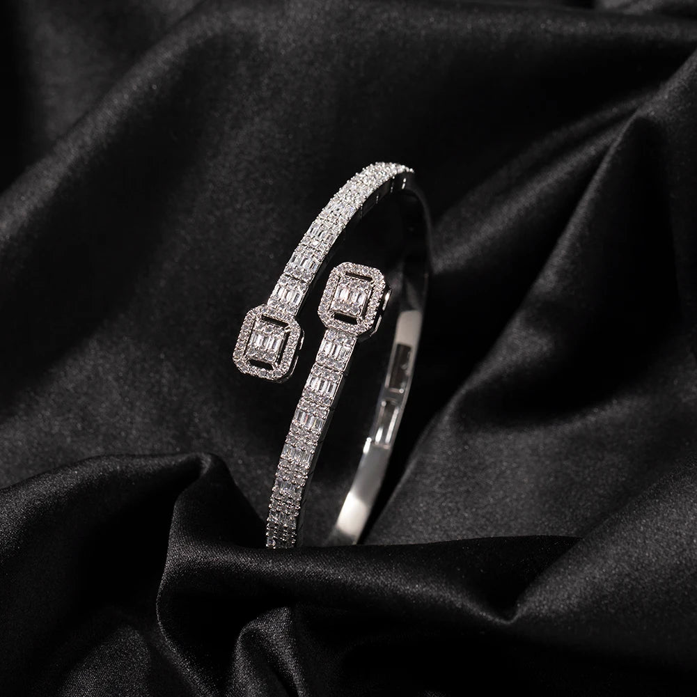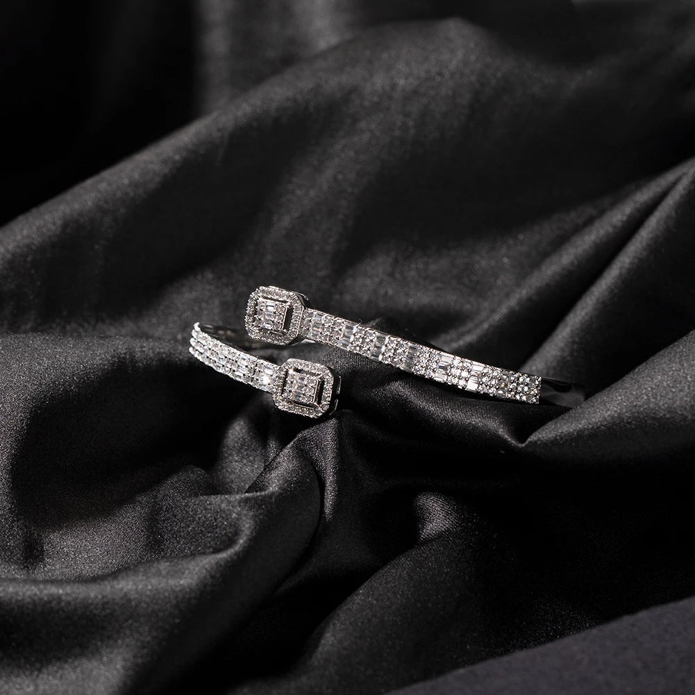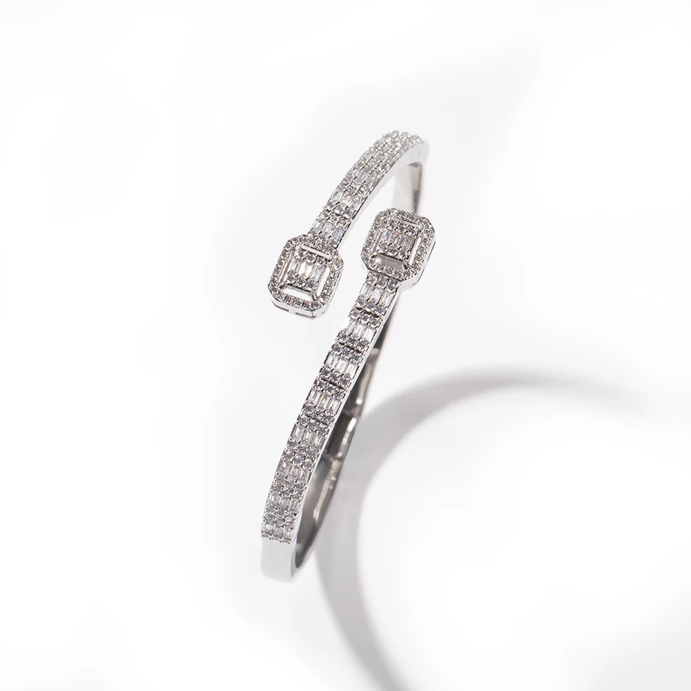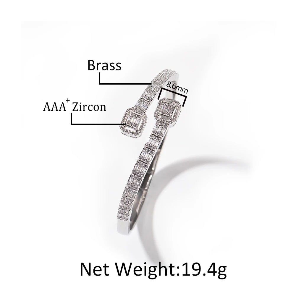 THE BLING KING Opened Baguettecz Cuff Bangle Micro Paved Bling Cubic Zirconia Bracelet Luxury Gift For Women Men Hiphop Jewelry