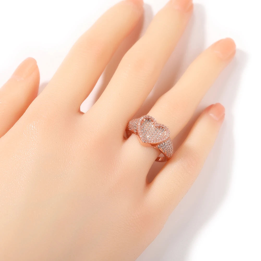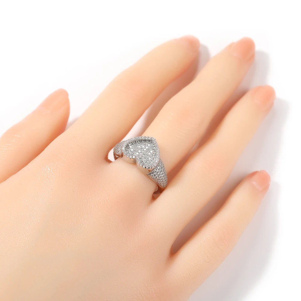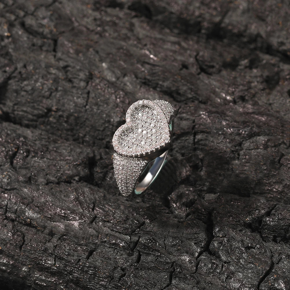 THE BLING KING Sunken Heart Ring Micro Paved Out Bling Cubic Zirconia Ring Exquisite Gift For Men Women Punk HipHop Jewelry