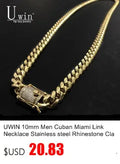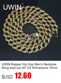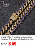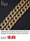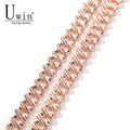 Uwin S-Link Miami RoseGold Color 12mm Cuban Link Pink Rhinestone Necklace Chain Full Bling Punk Bling Bling Charm Hiphop Jewelry