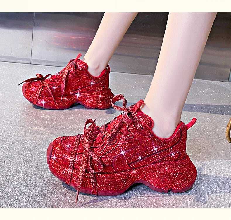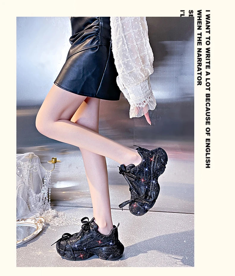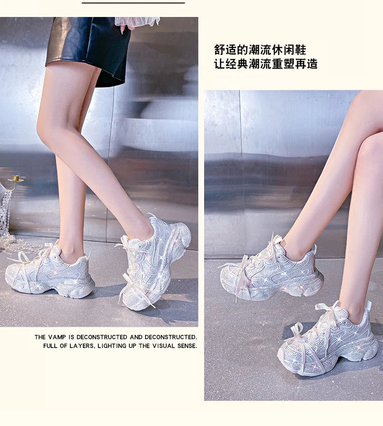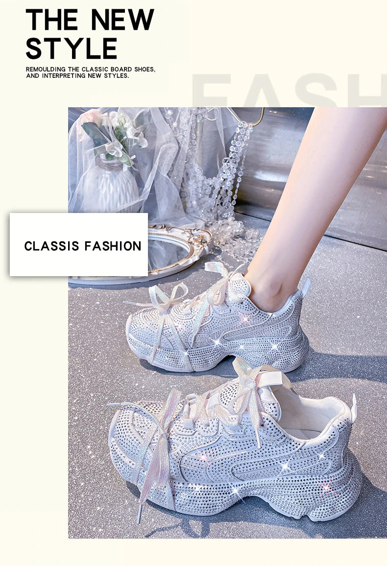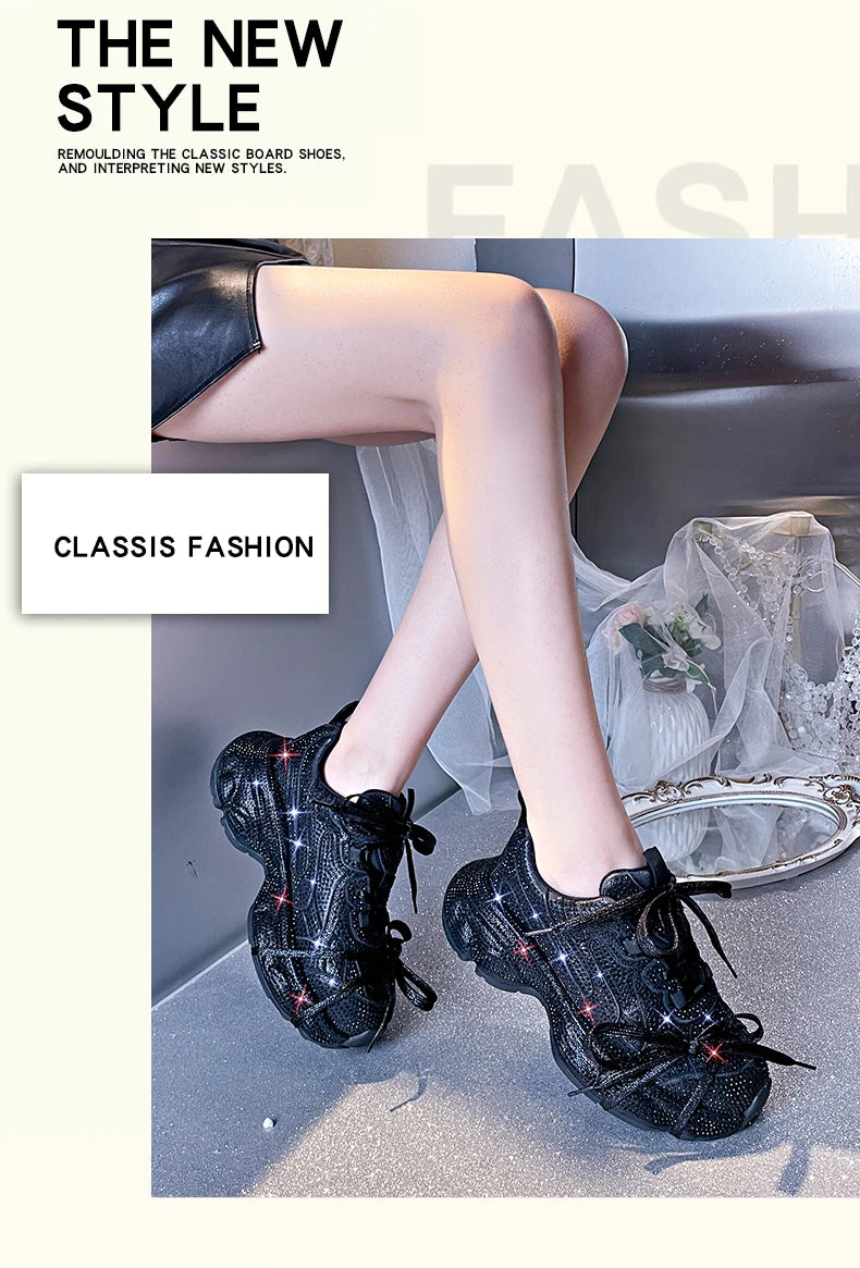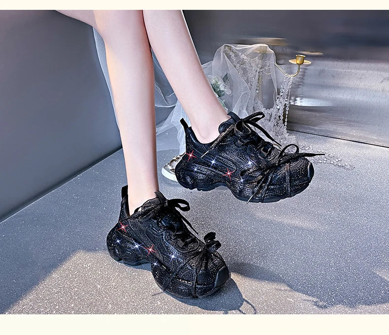 Women Luxury Platform Sneakers Bling Bling Casual Outdoor Shoes High Quality Running Tennis Sneakers Lace Up Fashion Sport Shoes