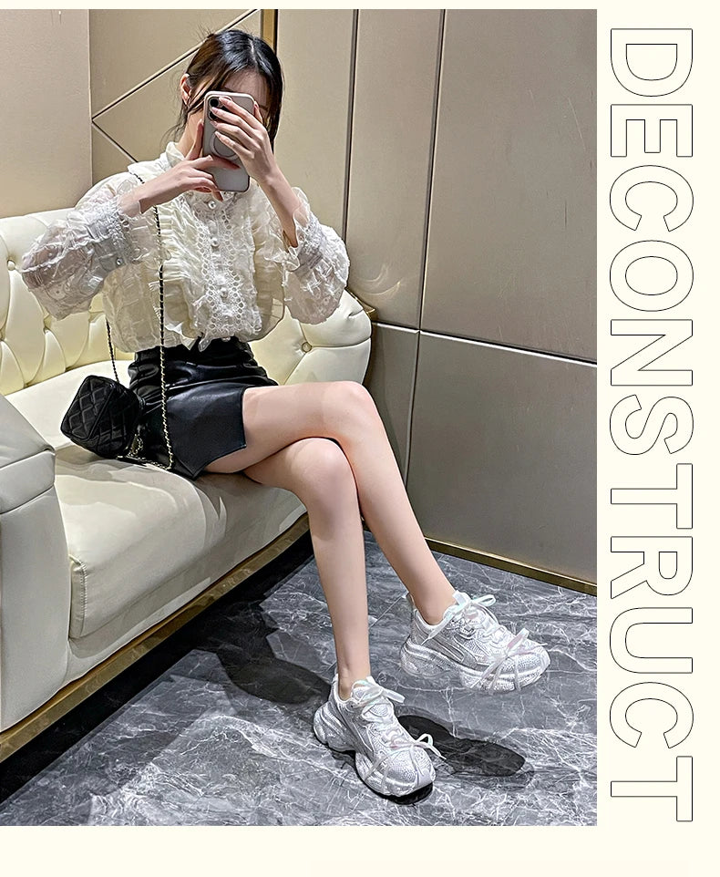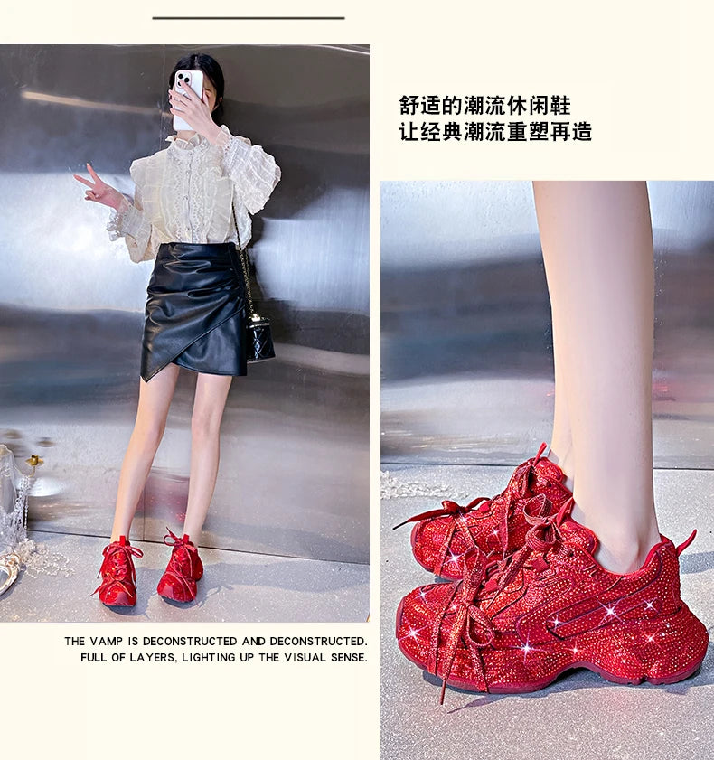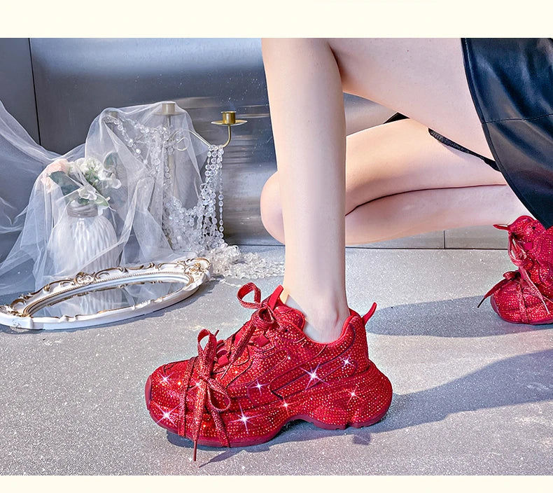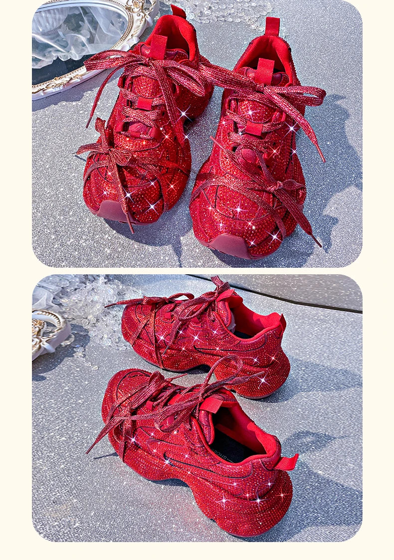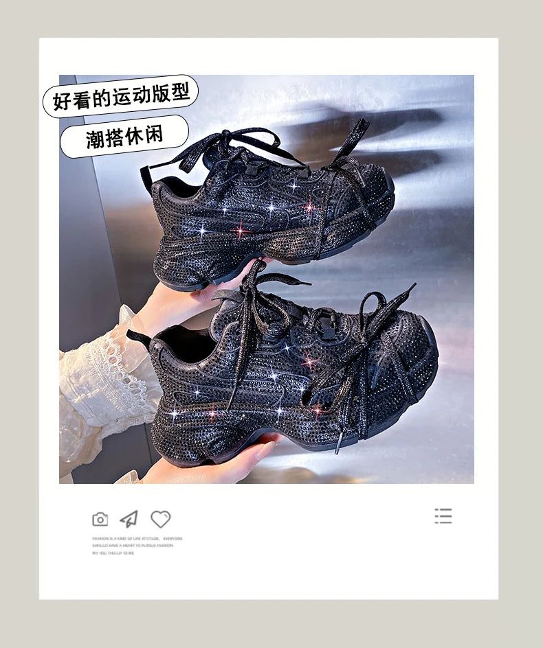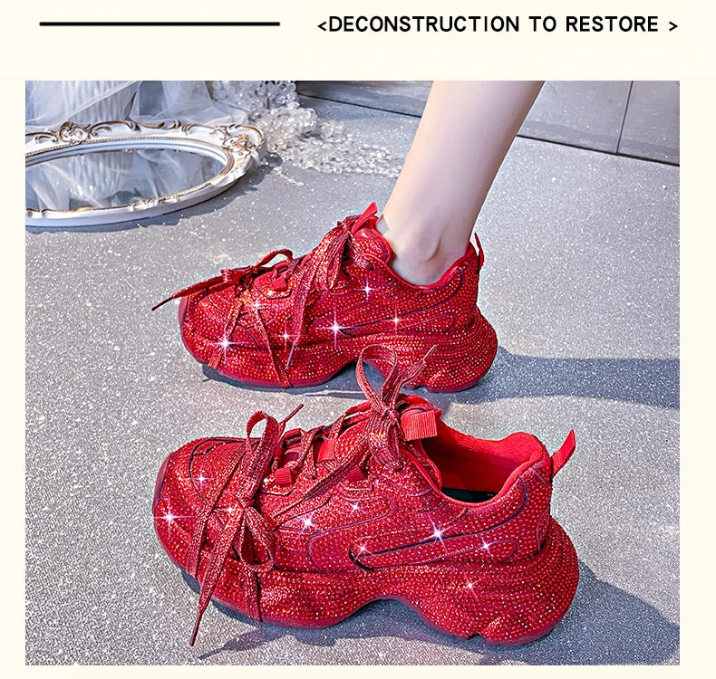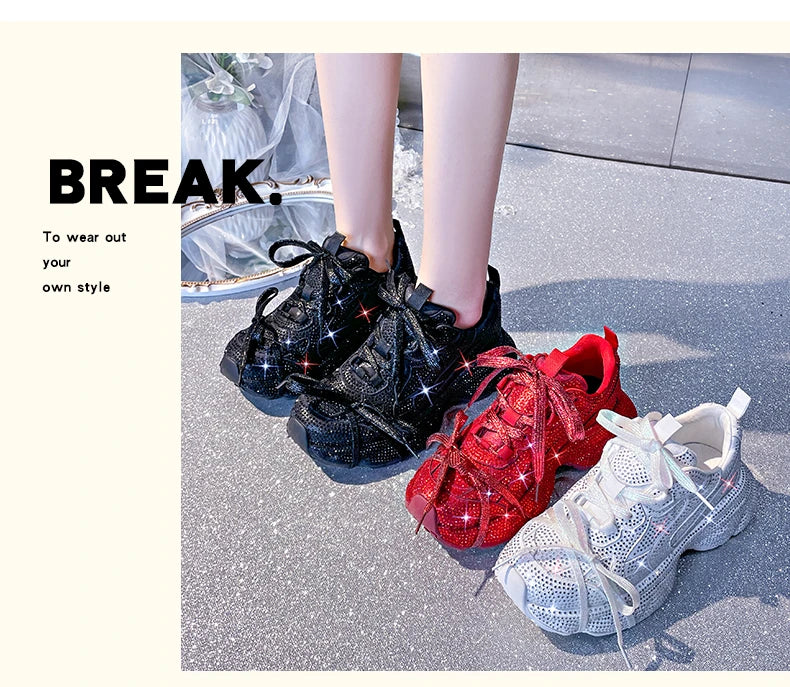 Women Luxury Platform Sneakers Bling Bling Casual Outdoor Shoes High Quality Running Tennis Sneakers Lace Up Fashion Sport Shoes