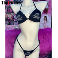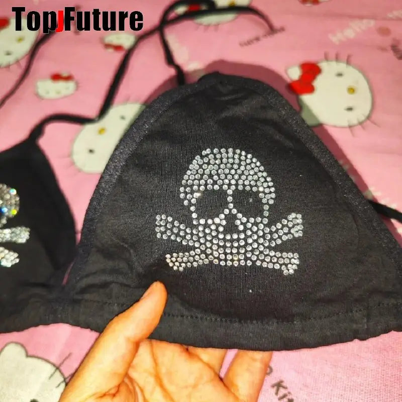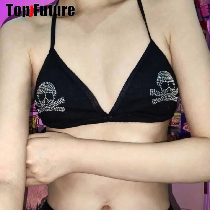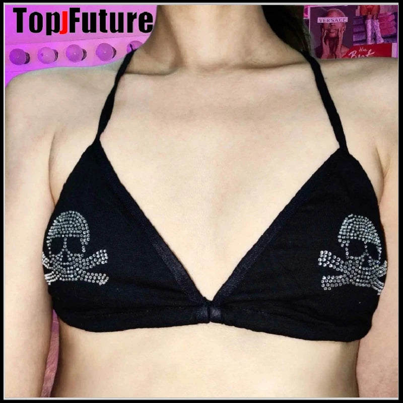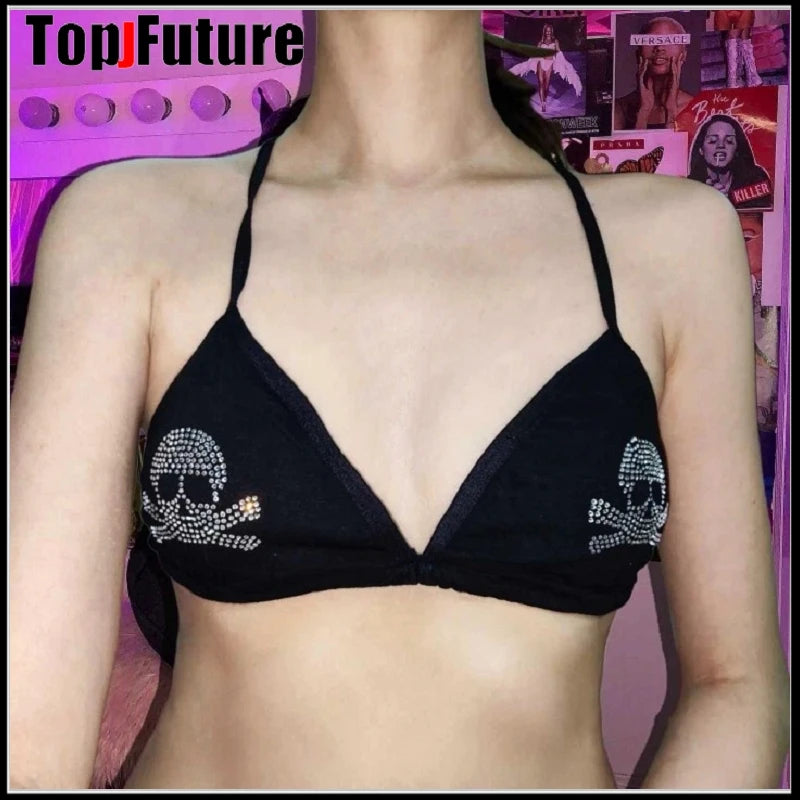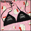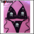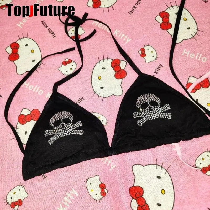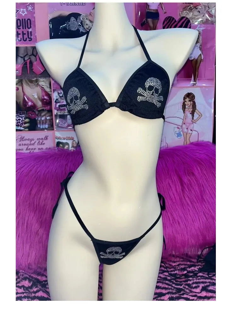 Women Men Gothic Lolita Punk Harajuku Y2K girl skull Bikini Bling Bling Tank Top Trim Crop Tops Bikini set