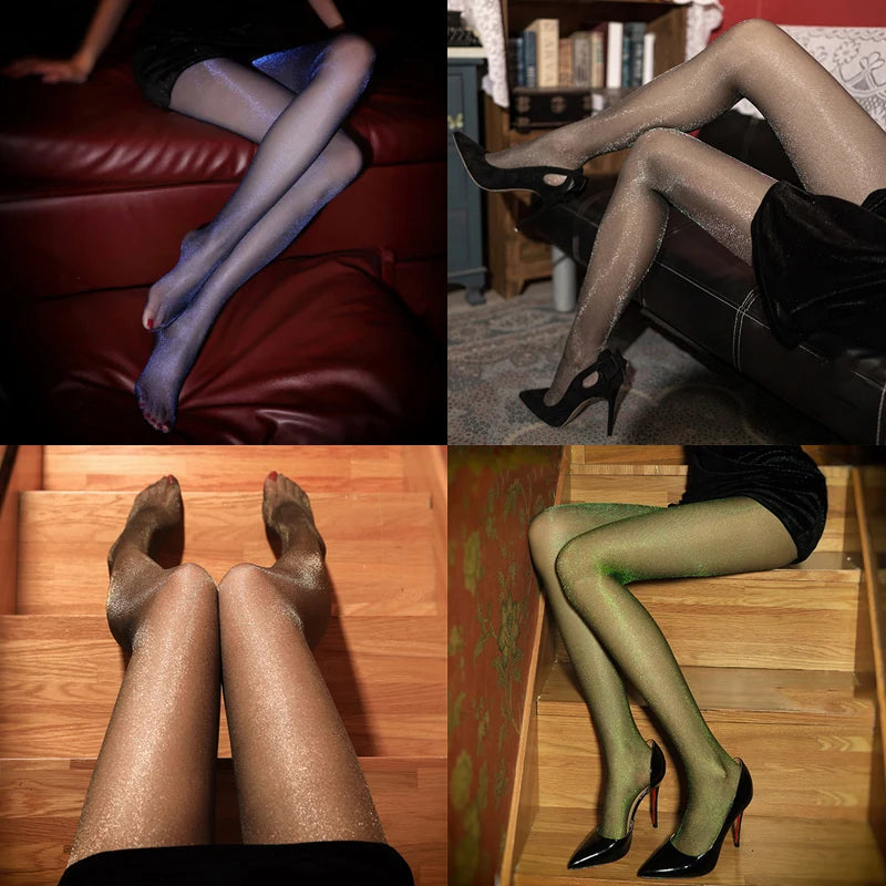 Women Sexy Oil Glossy Transparent Stockings Open Crotch Tights High Waist Pantyhose Hot Bling Pole Dance Nightclub Hosiery