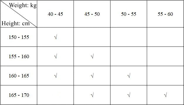 Size: One Size Fits Height: 150 - 170 cm, Waist: 55 - 80 cm, Hips: 65 - 100 cm.