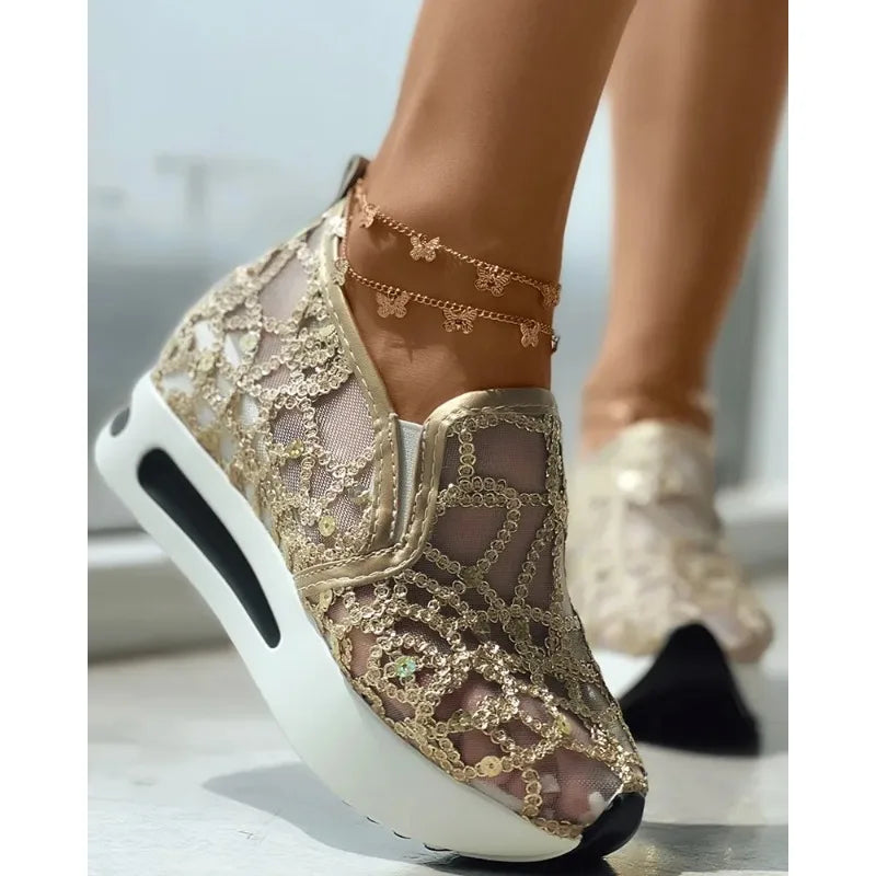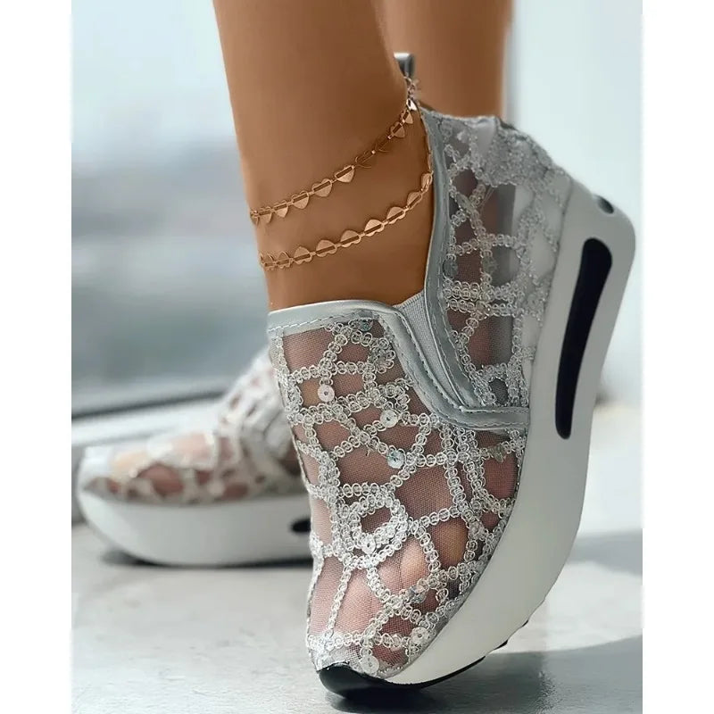 women's Muffin Sneakers Sequin Slip On Casual Shoes Round Toe Bling Bling Contrast Paneled Low Heel Sequin Slip On Sneakers